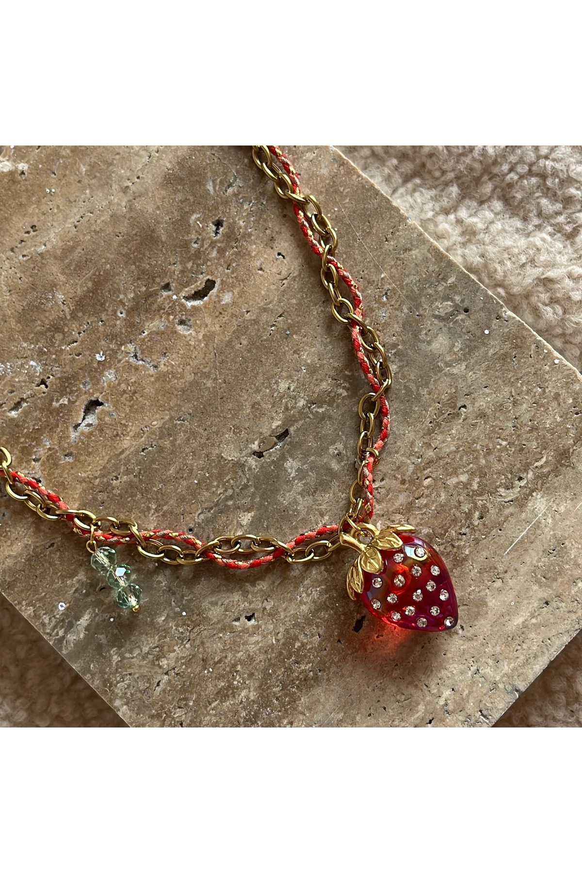 Kırmızı Kristal Çilek Kolye Kırmızı Kristal Çilek Kolye çilekeş L