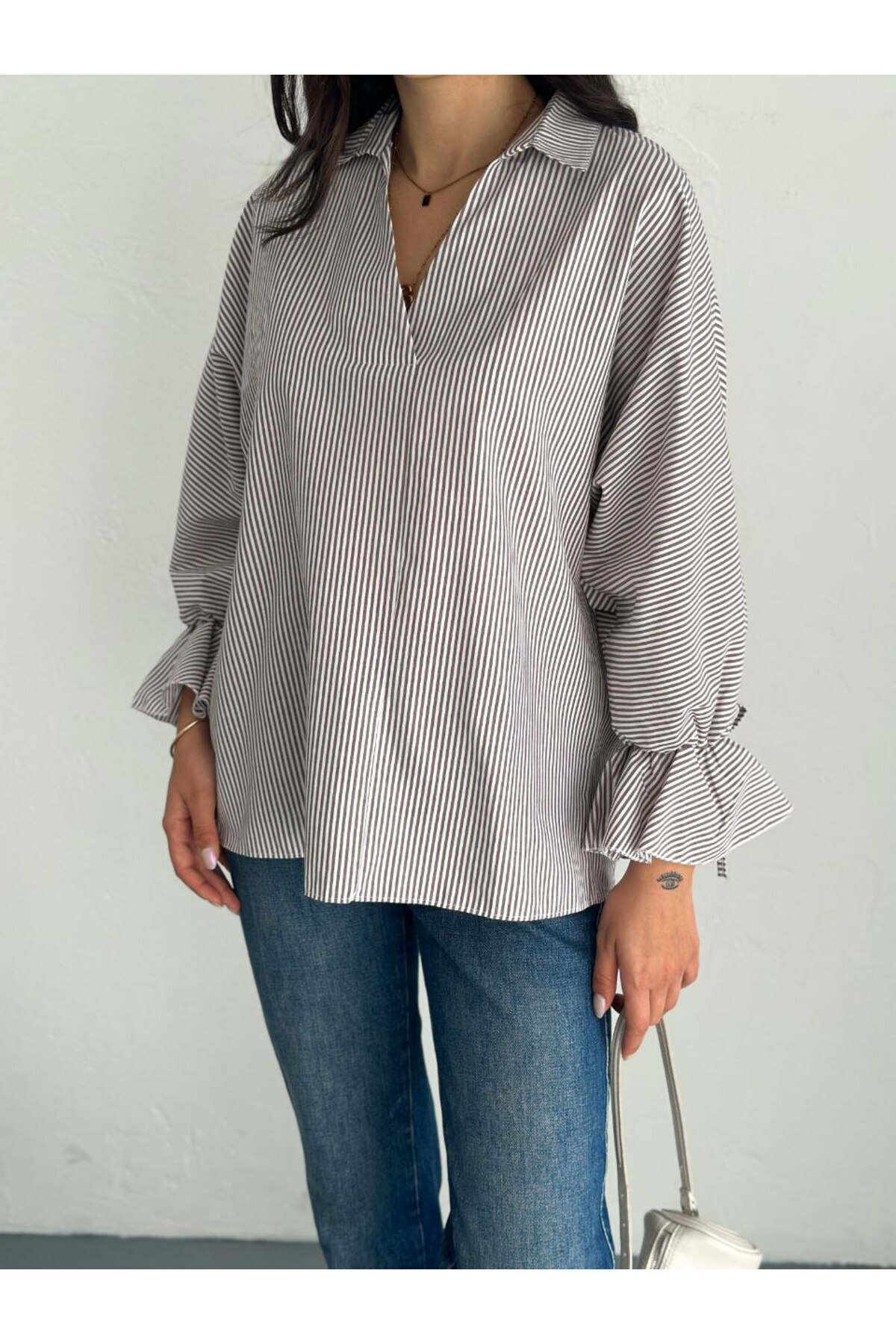 KADIN ÇİZGİLİ SALAŞ BLUZ KADIN ÇİZGİLİ SALAŞ BLUZ KİSS-1 L
