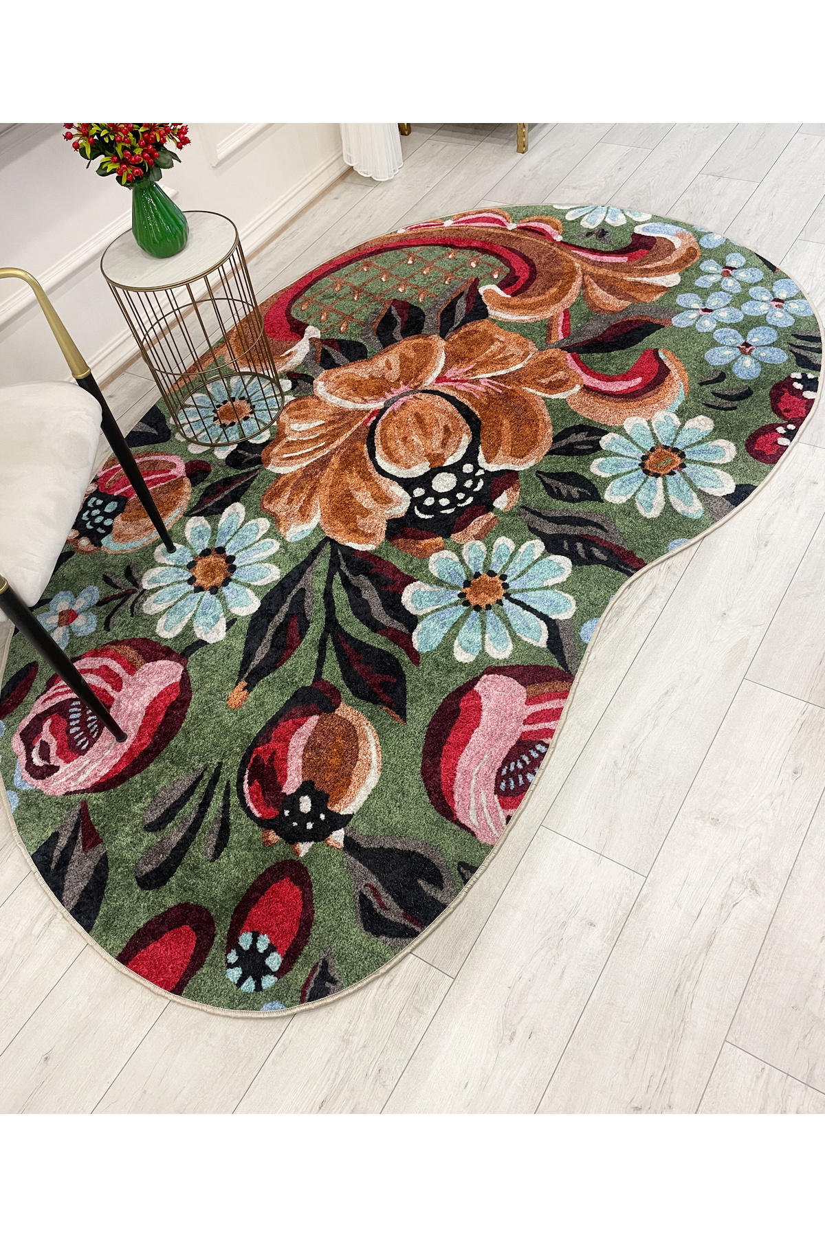 Yeşil Çiçek Desenli Floral Lateks Taban Halı Yeşil Çiçek Desenli Floral Lateks Taban Halı MGZ_SIENA 160 x 230