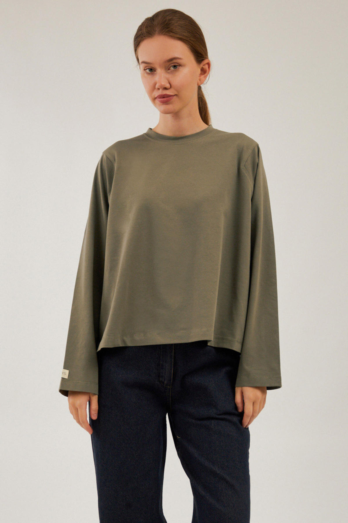 Kadın Haki Geniş Kol Oversize Kısa Basic T-shirt 30059 Kadın Haki Geniş Kol Oversize Kısa Basic T-shirt 30059 L