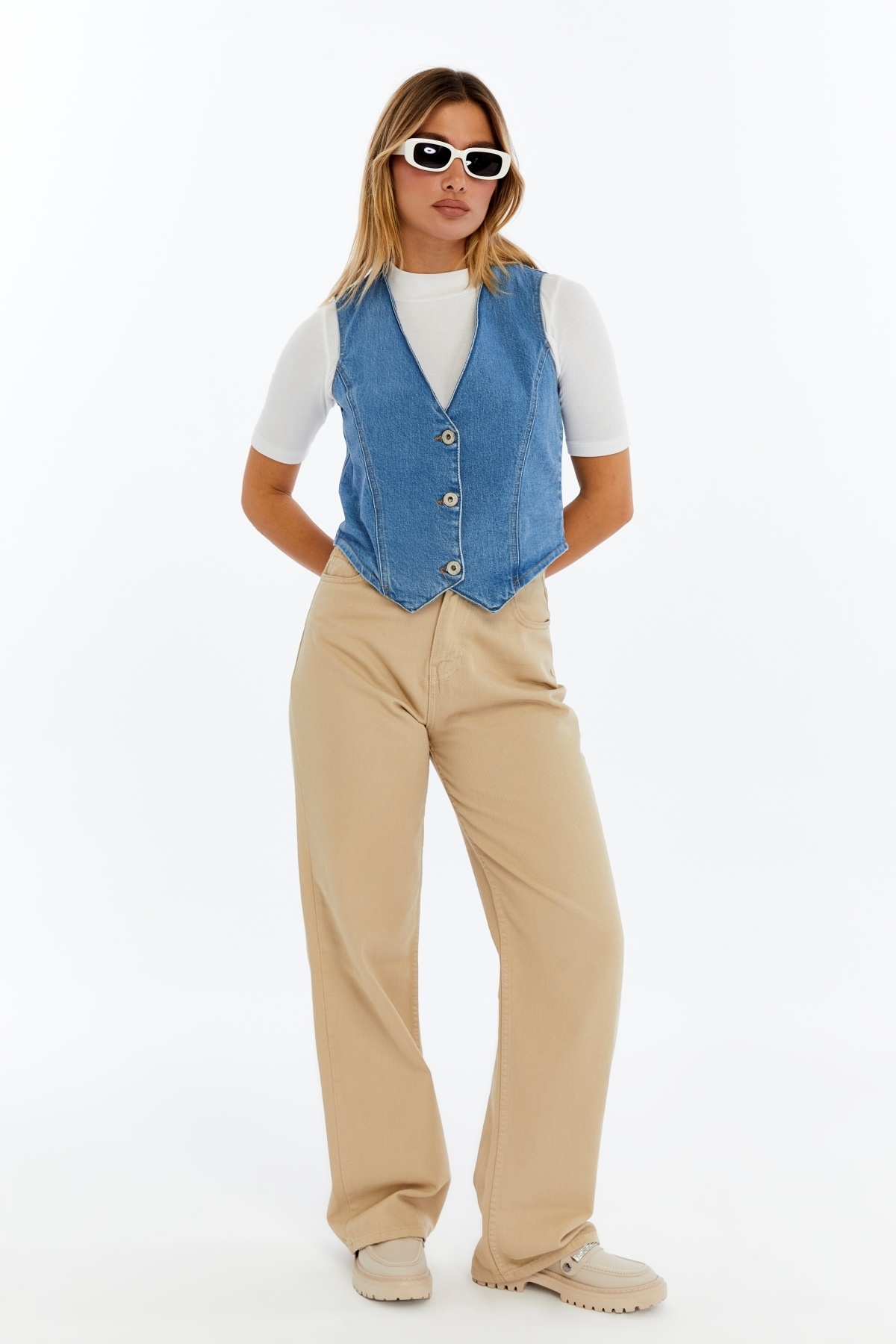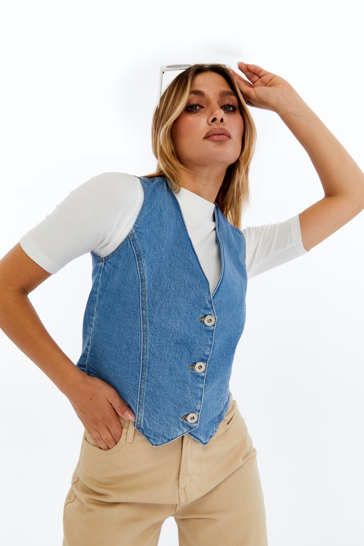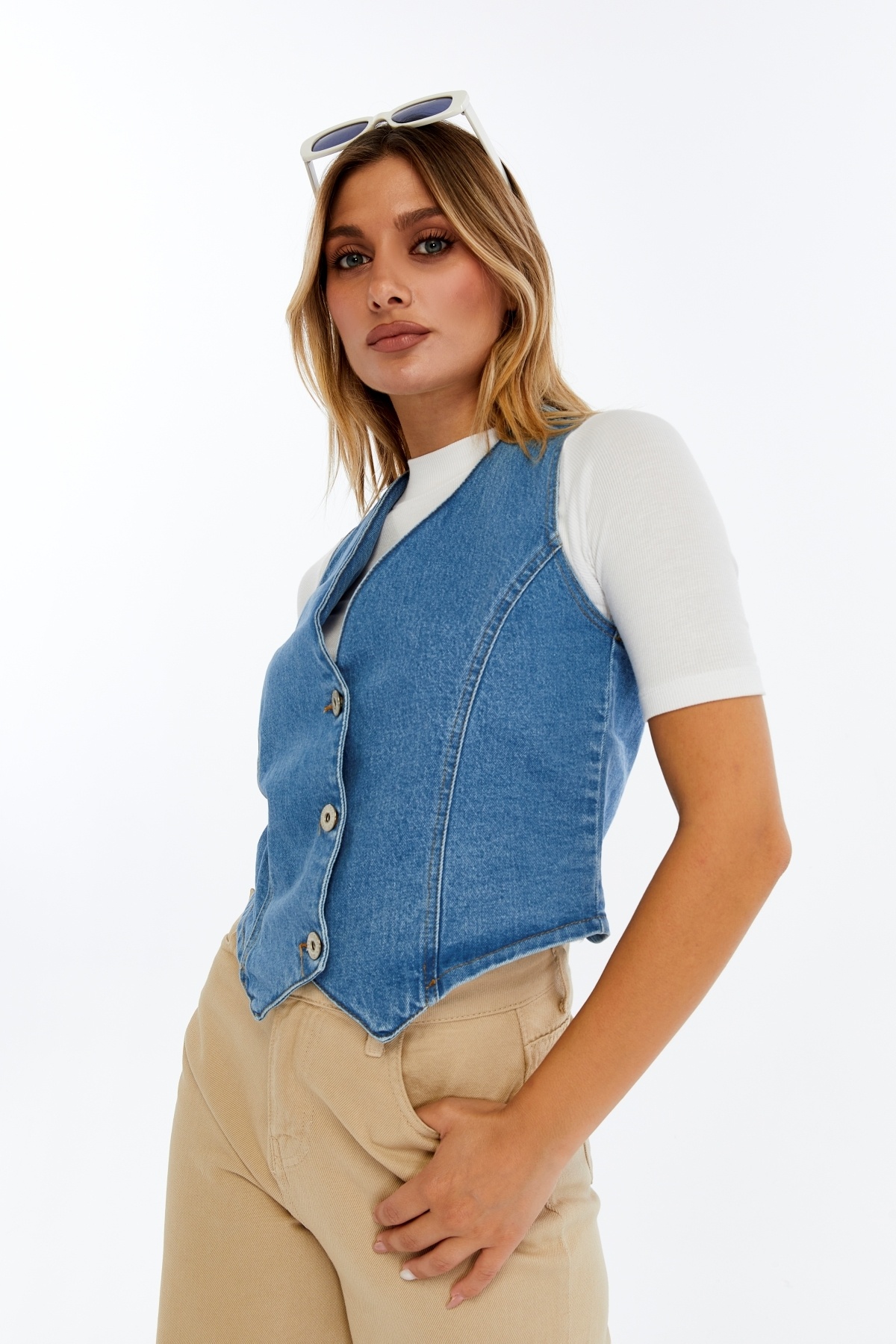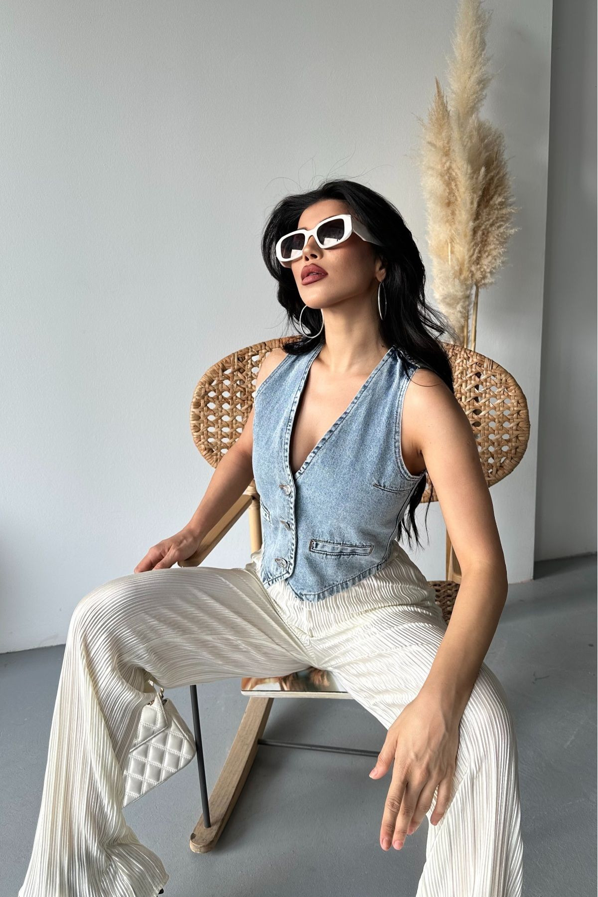 Kadın Denim Yelek – Şık Düğmeli Jean Yelek, Günlük ve Casual Kombin Kadın Denim Yelek – Şık Düğmeli Jean Yelek, Günlük ve Casual Kombin YELEK3 L
