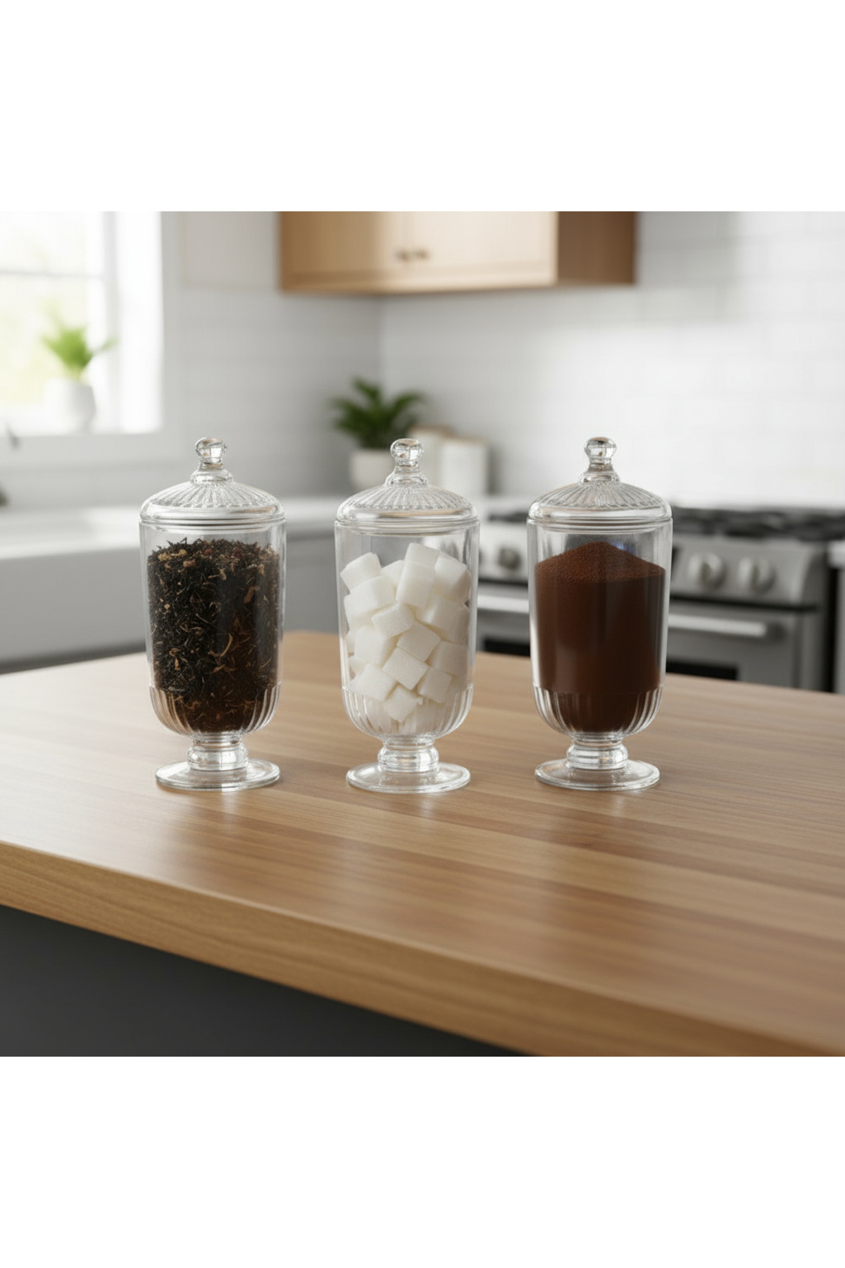 3'lü Çizgi Desen Tezgah Üstü Uzun Cam Drajelik-Baharatlık-Kavanoz Seti 950 cc. 3'lü Çizgi Desen Tezgah Üstü Uzun Cam Drajelik-Baharatlık-Kavanoz Seti 950 cc. TB308C-3 تک سایز