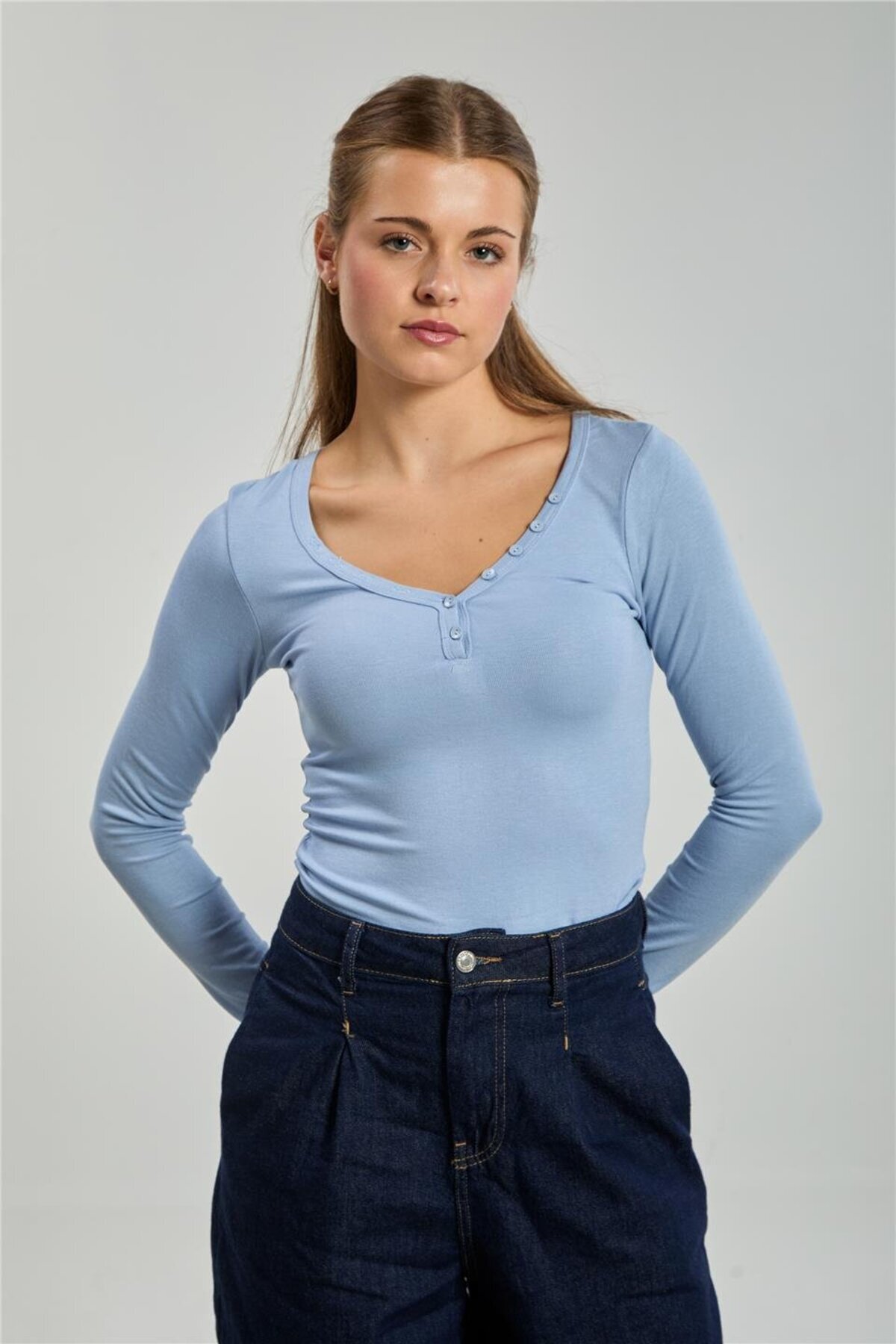 Kadın Yaka Düğmeli Uzun Kol Body - Kar Melanj Kadın Yaka Düğmeli Uzun Kol Body - Kar Melanj 447-25M006 L