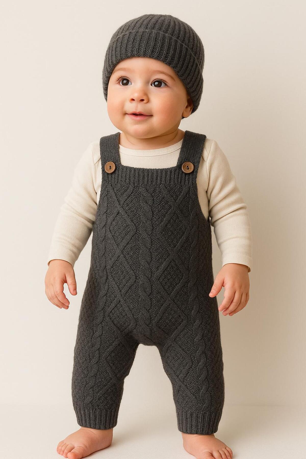 Kız Erkek Bebek Ayarlanabilir Askılı Baklava Desenli Bereli Triko Salopet Takımı Kız Erkek Bebek Ayarlanabilir Askılı Baklava Desenli Bereli Triko Salopet Takımı 3704-BAKLV-DĞM-SALOPET 12-18 AY