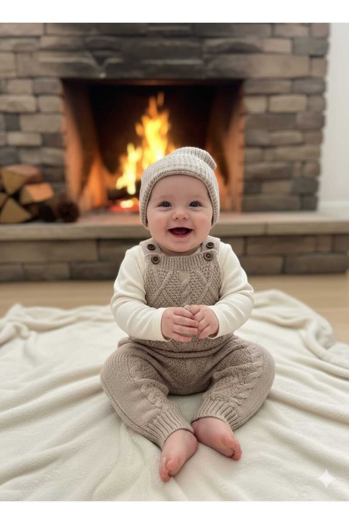 Kız Erkek Bebek Ayarlanabilir Askılı Baklava Desenli Bereli Triko Salopet Takımı Kız Erkek Bebek Ayarlanabilir Askılı Baklava Desenli Bereli Triko Salopet Takımı 3704-BAKLV-DĞM-SALOPET 12-18 AY