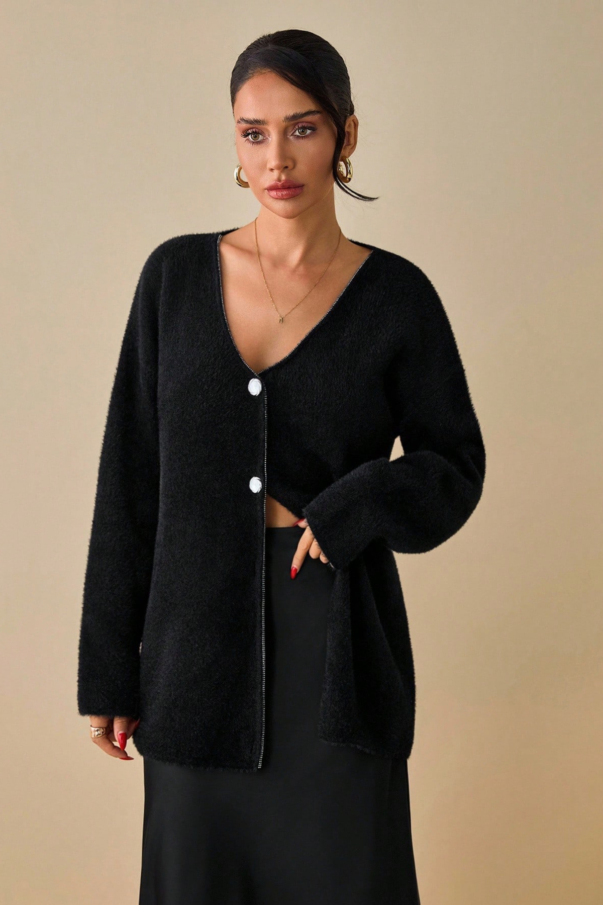 Kadın Siyah Yumuşak Dokulu Hırka Kadın Siyah Yumuşak Dokulu Hırka 321526981 تک سایز