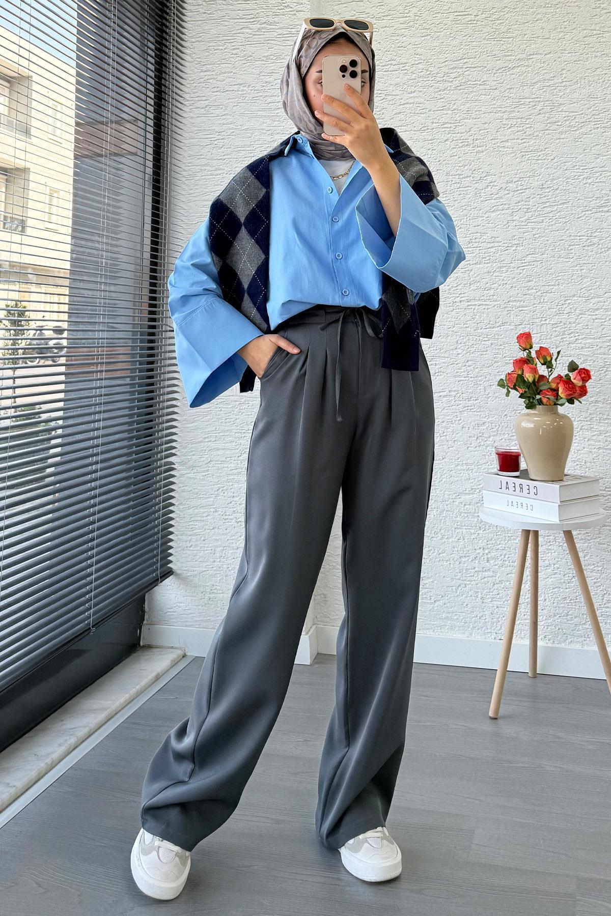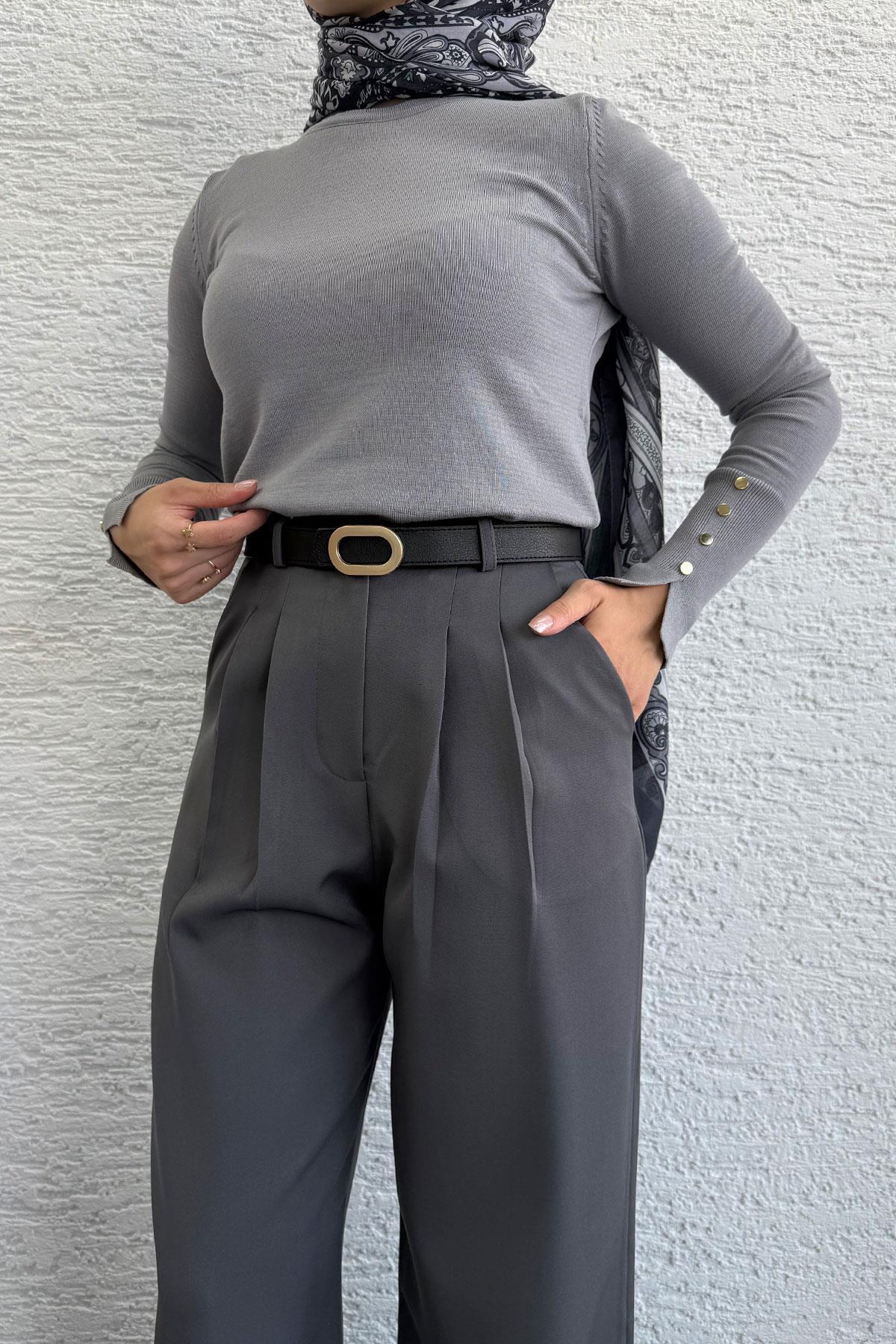 Havuç Kesim Yüksek Bel Casual Pantolon - Füme Havuç Kesim Yüksek Bel Casual Pantolon - Füme mlk15417 L