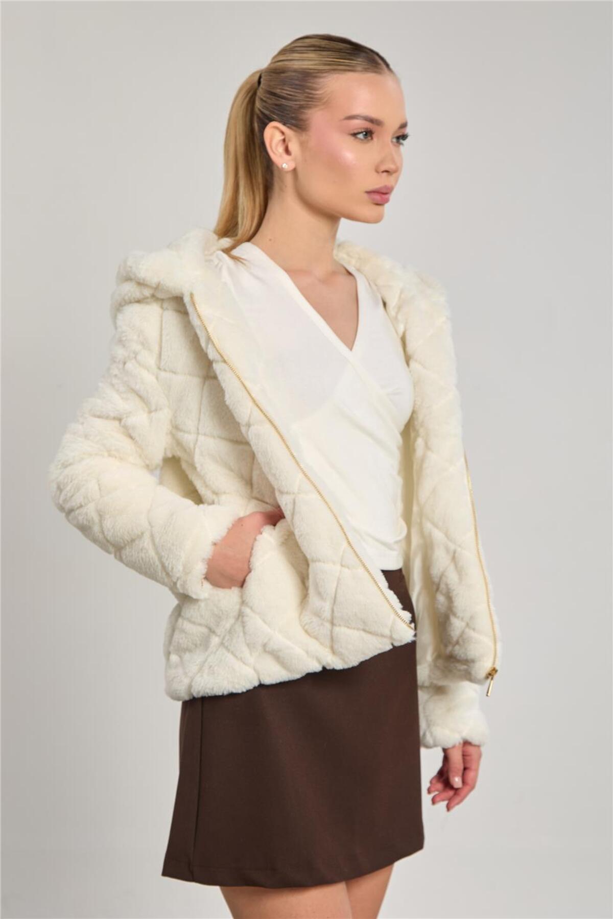 Kadın Baklava Desenli Peluş Ceket - Ekru Kadın Baklava Desenli Peluş Ceket - Ekru 1015-25K50001 L