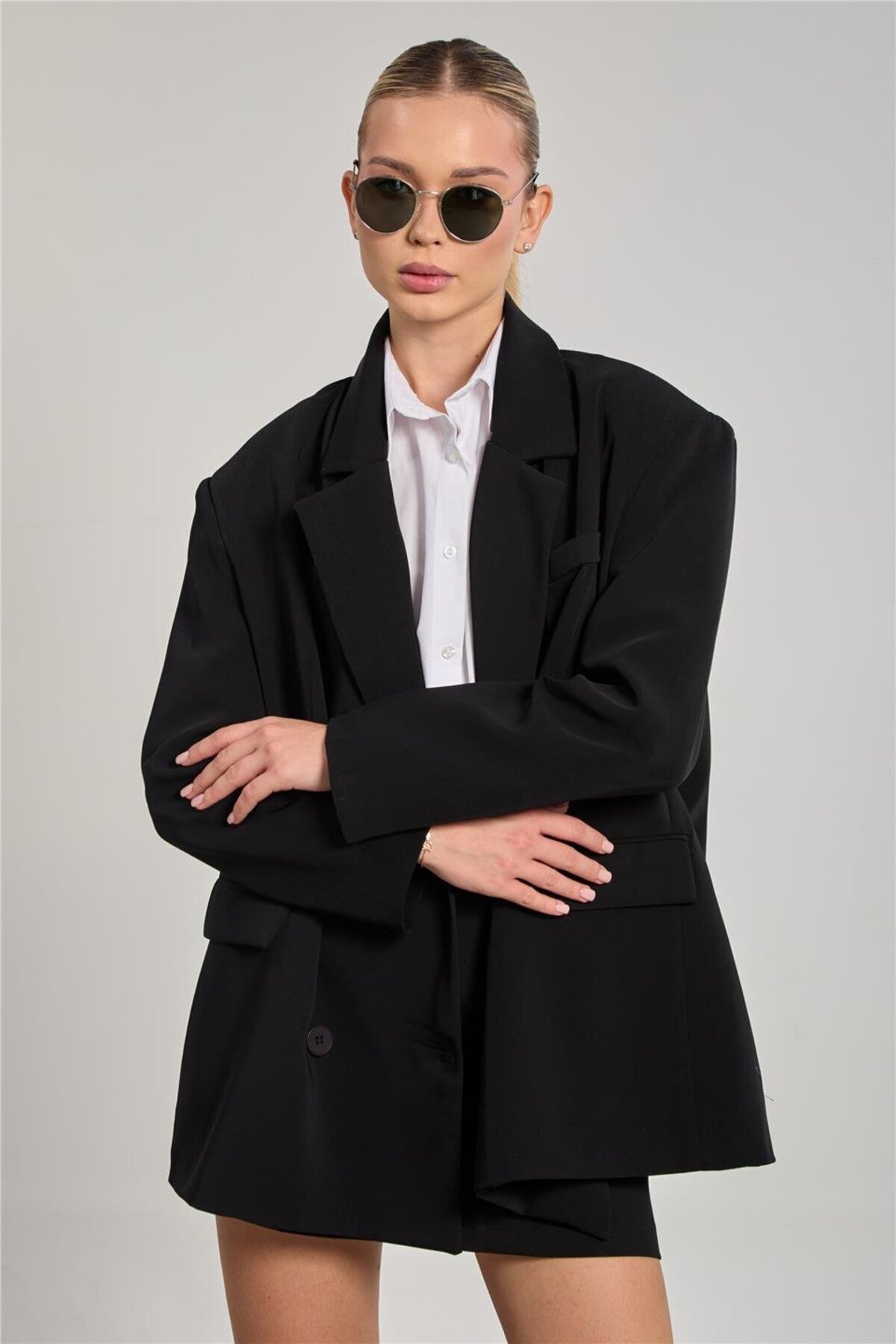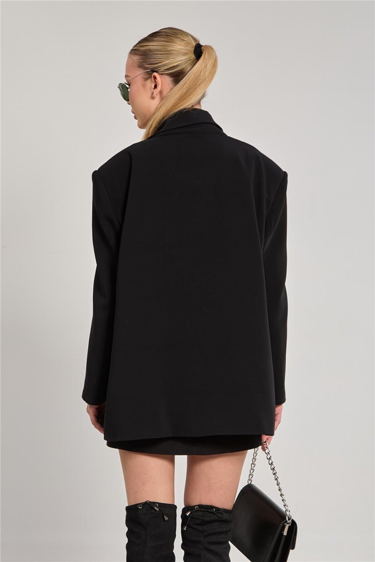 Kadın Dört Düğmeli Oversize Blazer Ceket - Siyah Kadın Dört Düğmeli Oversize Blazer Ceket - Siyah 1040-25M50011 Standart
