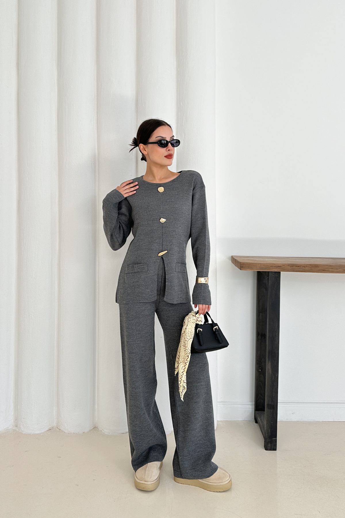 Kadın Antrasit Düğme Detaylı Basic Şık İkili Triko Takım Kadın Antrasit Düğme Detaylı Basic Şık İkili Triko Takım 2029 LSTD