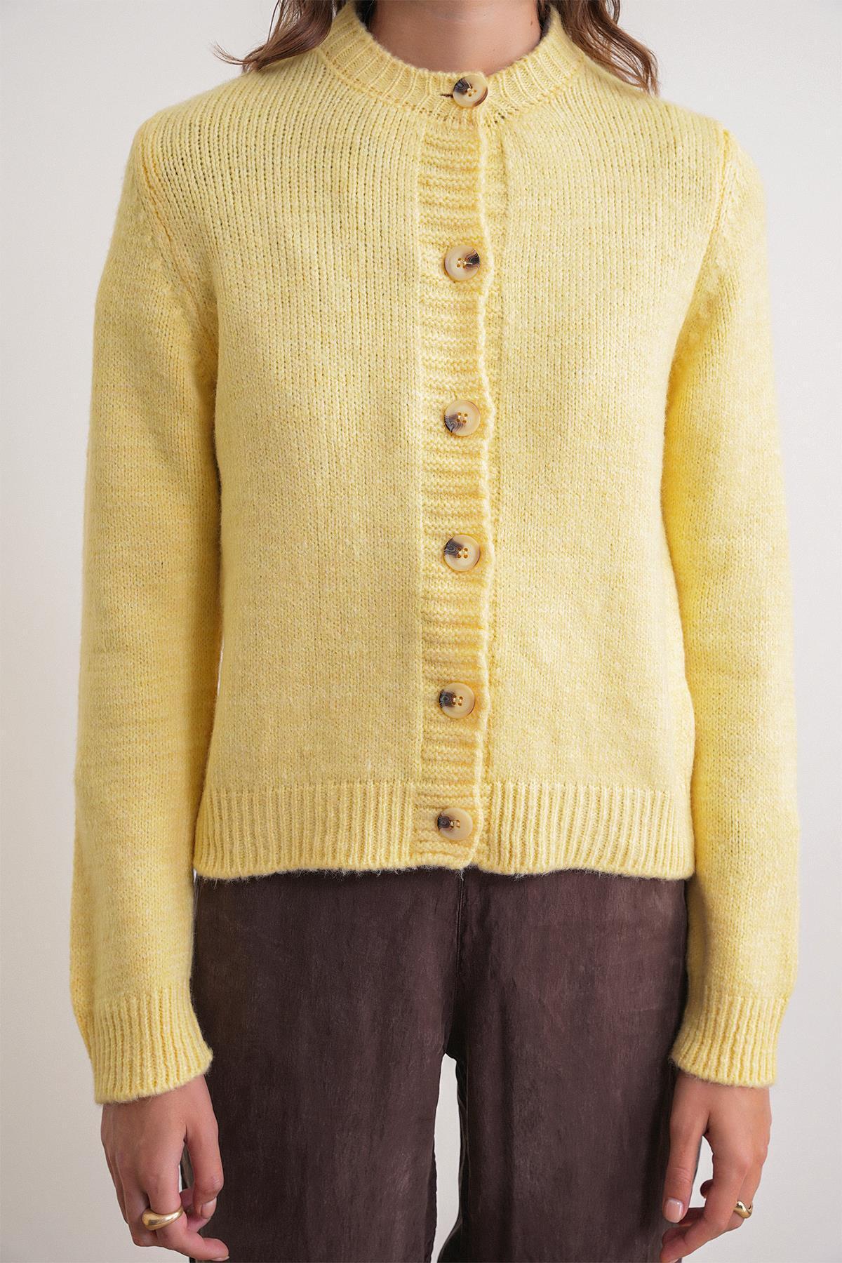 6951 Kadın Bisiklet Yaka Düğmeli Triko Kısa Hırka Sarı 6951 Kadın Bisiklet Yaka Düğmeli Triko Kısa Hırka Sarı K25HRK6951 Standart