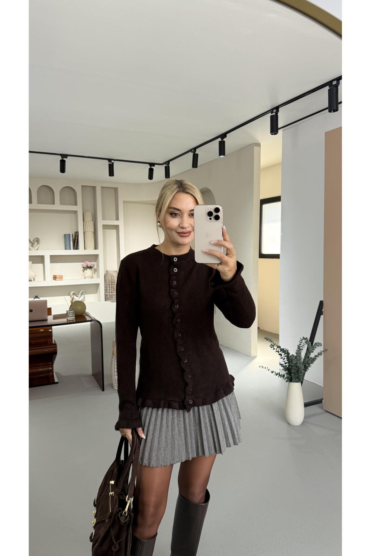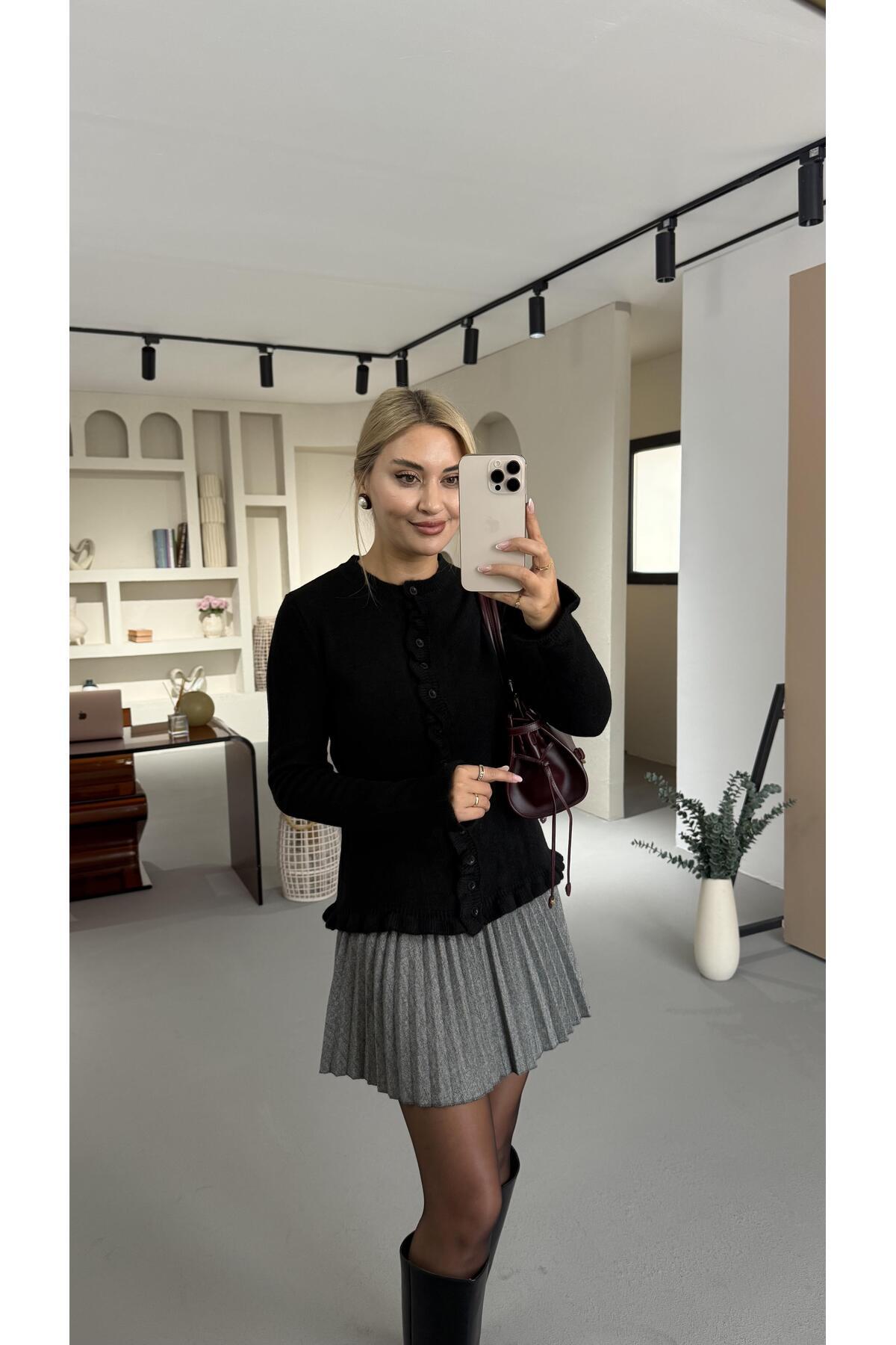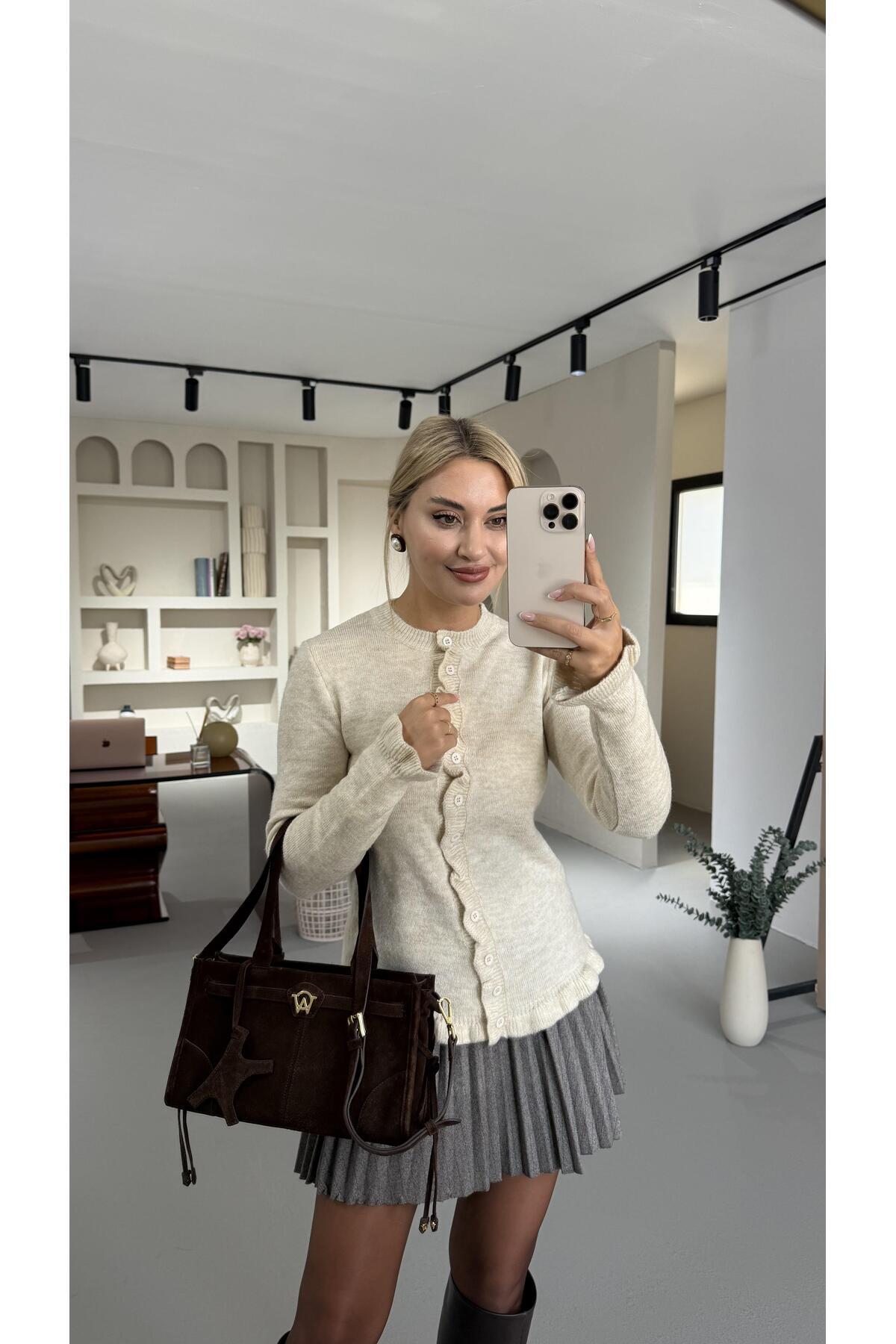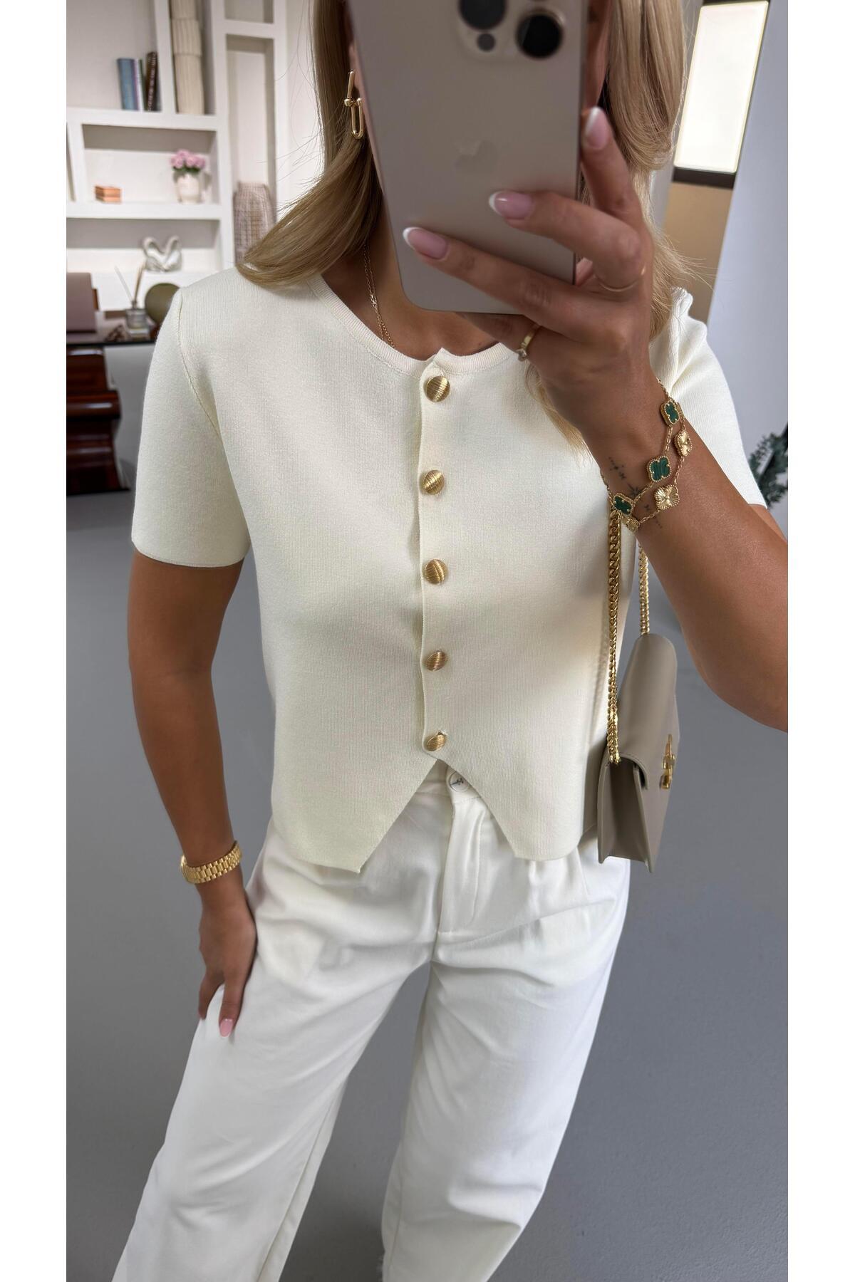 Gold Düğme Detay Kısa Kol Ekru Triko Hırka Gold Düğme Detay Kısa Kol Ekru Triko Hırka HRK-0076-EKR Standart