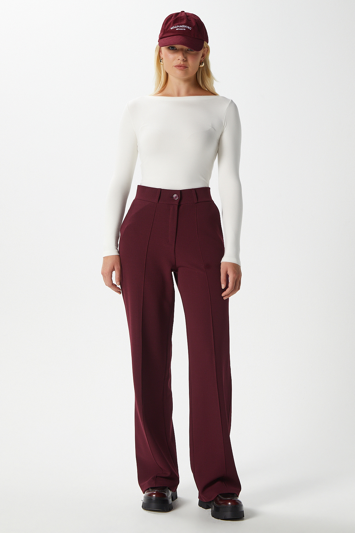 Likra Serisi Lift Süs Dikişli Esnek Bordo Palazzo Pantolon Likra Serisi Lift Süs Dikişli Esnek Bordo Palazzo Pantolon 1560 50