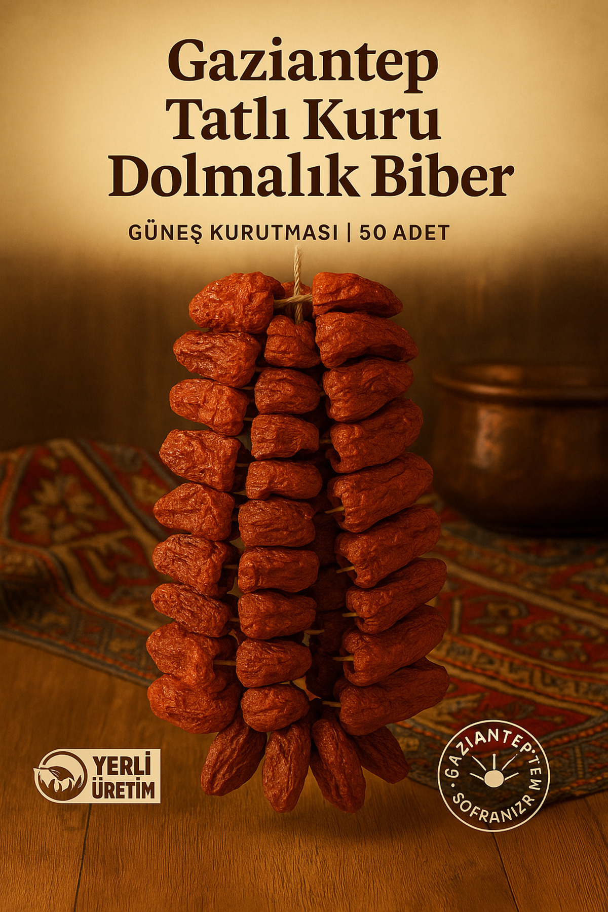 Gaziantep Acı Kuru Dolmalık Biber 50 Adet | %100 Doğal Güneş Kurutması Gaziantep Acı Kuru Dolmalık Biber 50 Adet | %100 Doğal Güneş Kurutması Abbr1 تک سایز