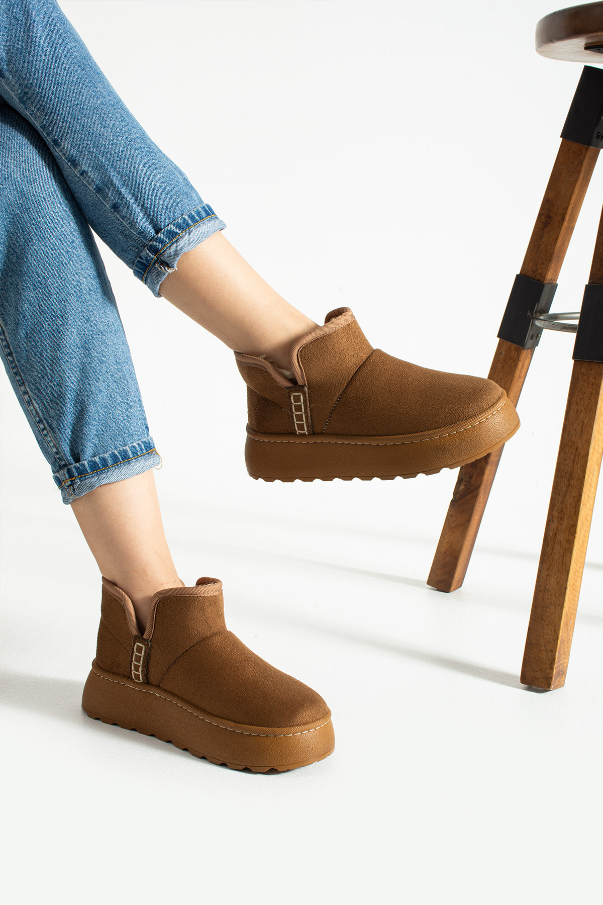 Taba Kadın Kalın Topuklu Kürklü Kısa Bot UG01NAV Taba Kadın Kalın Topuklu Kürklü Kısa Bot UG01NAV 40