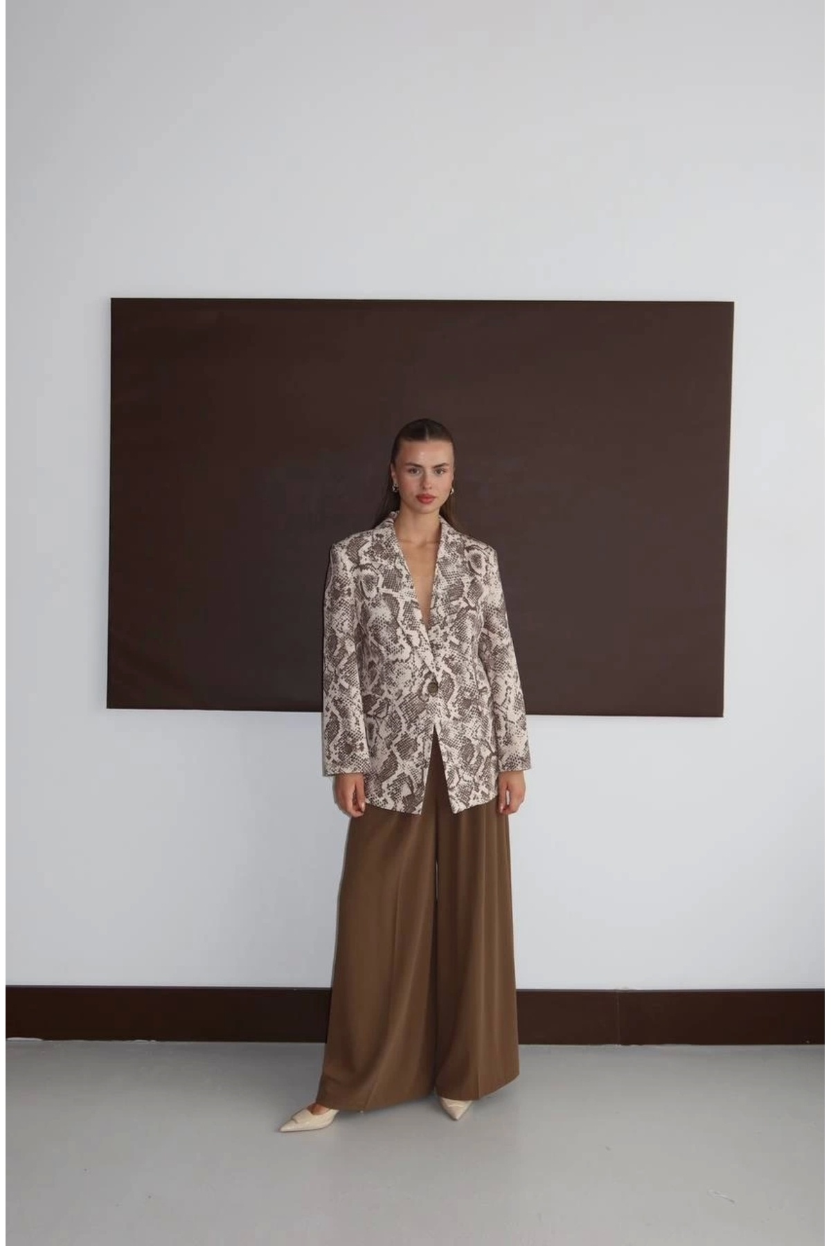 Dijital Baskı Tek Düğme Ceket-Kahve Dijital Baskı Tek Düğme Ceket-Kahve P1372S8450 L