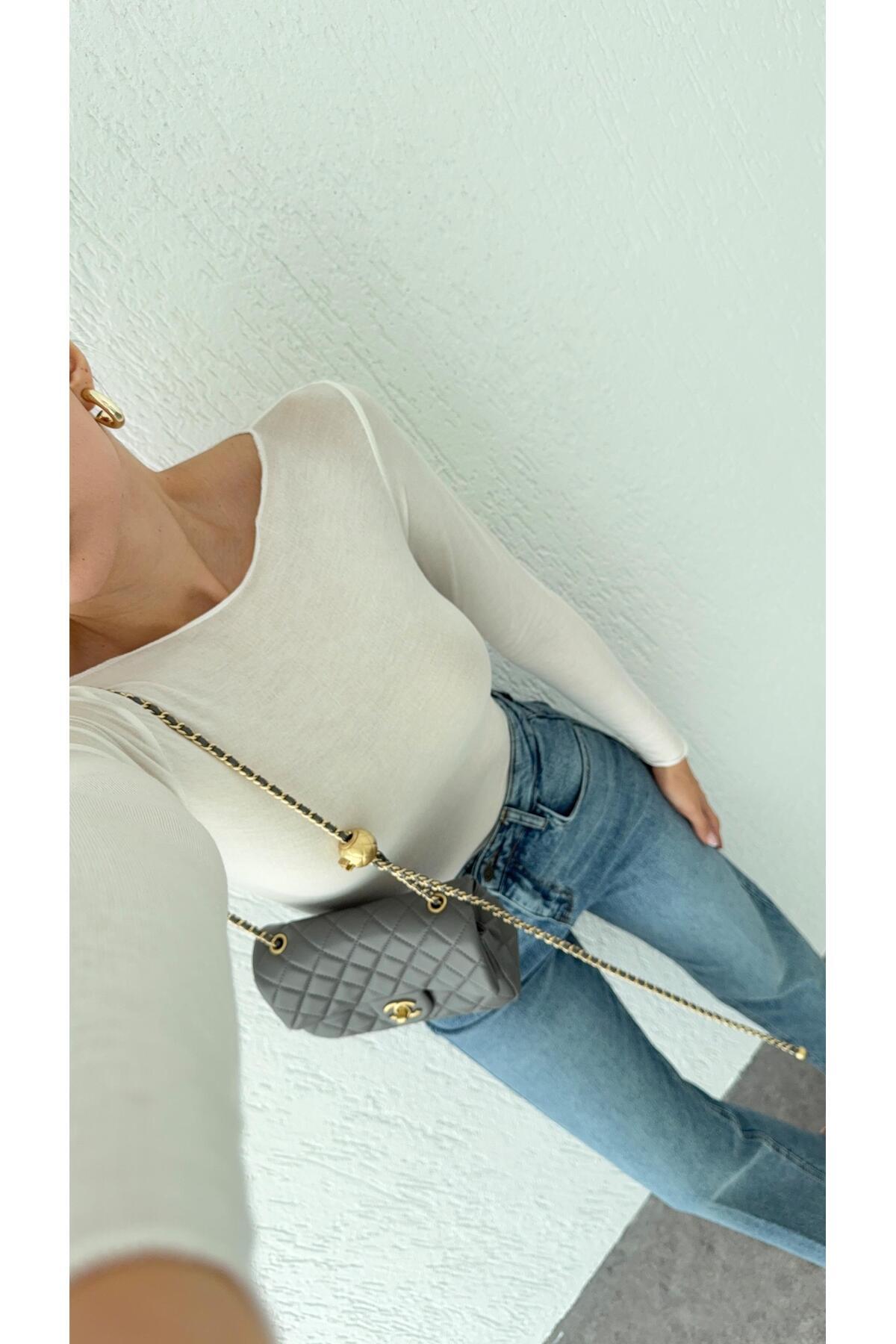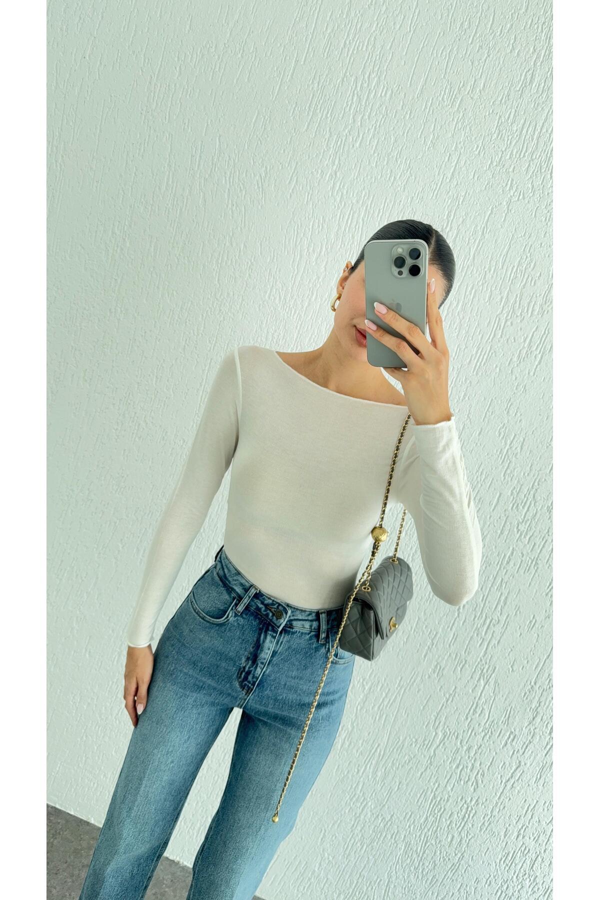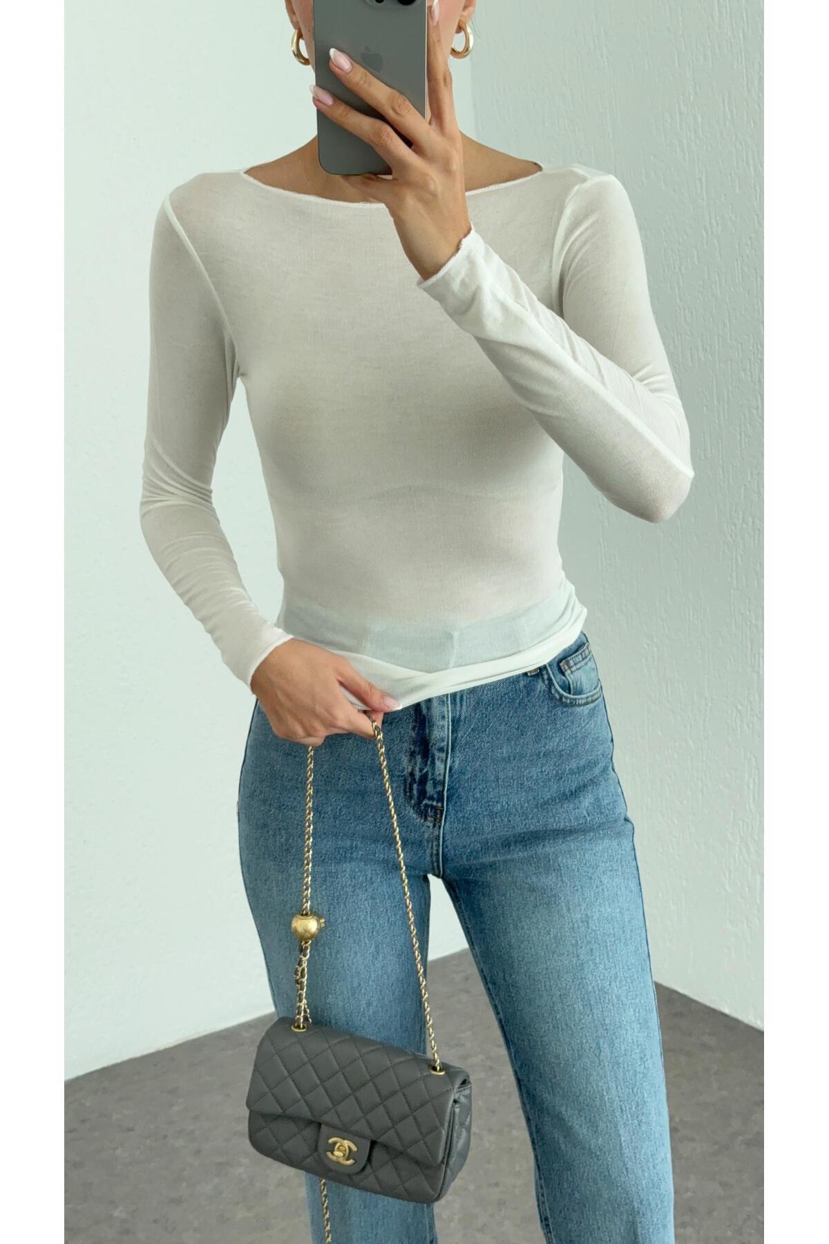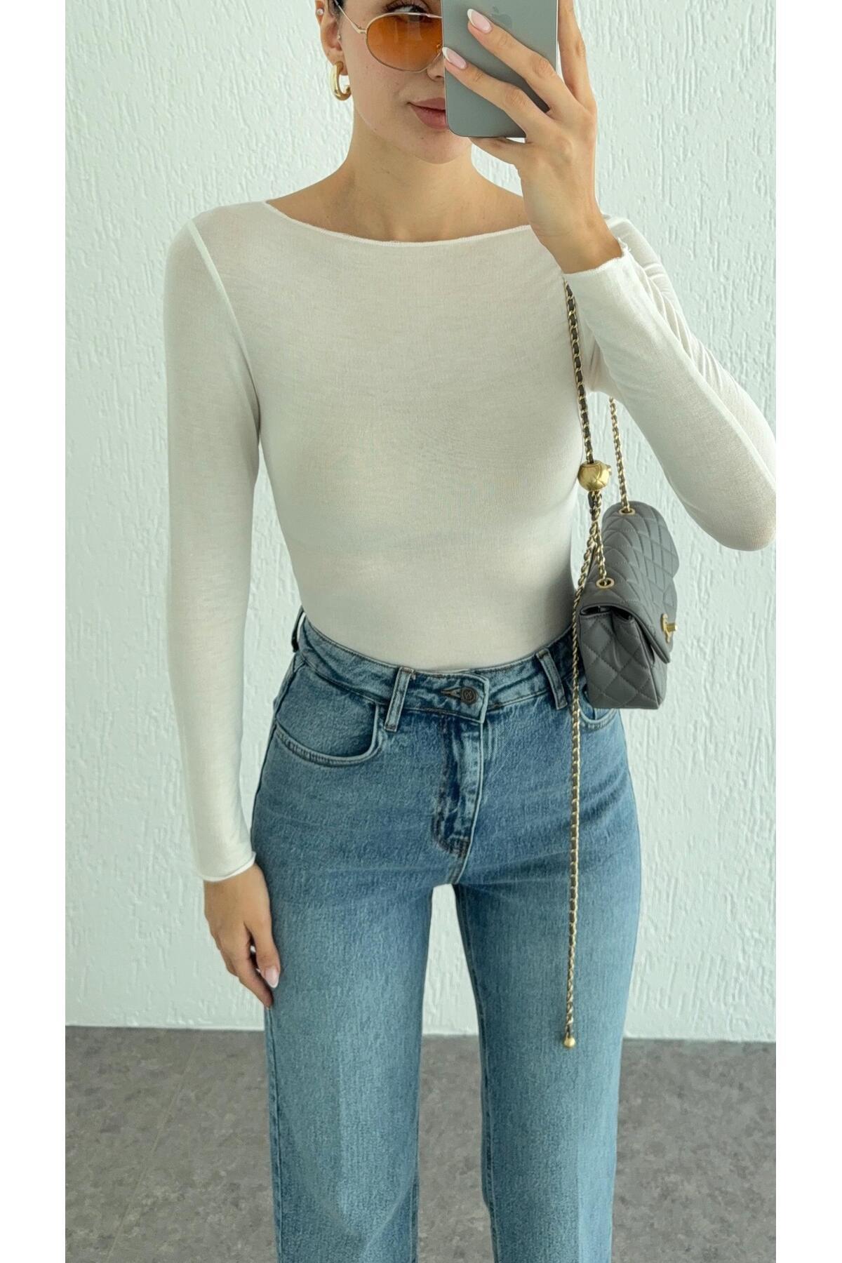 Kayık Yaka Transparan Modal Ekru Basic Bluz Kayık Yaka Transparan Modal Ekru Basic Bluz 11997 L