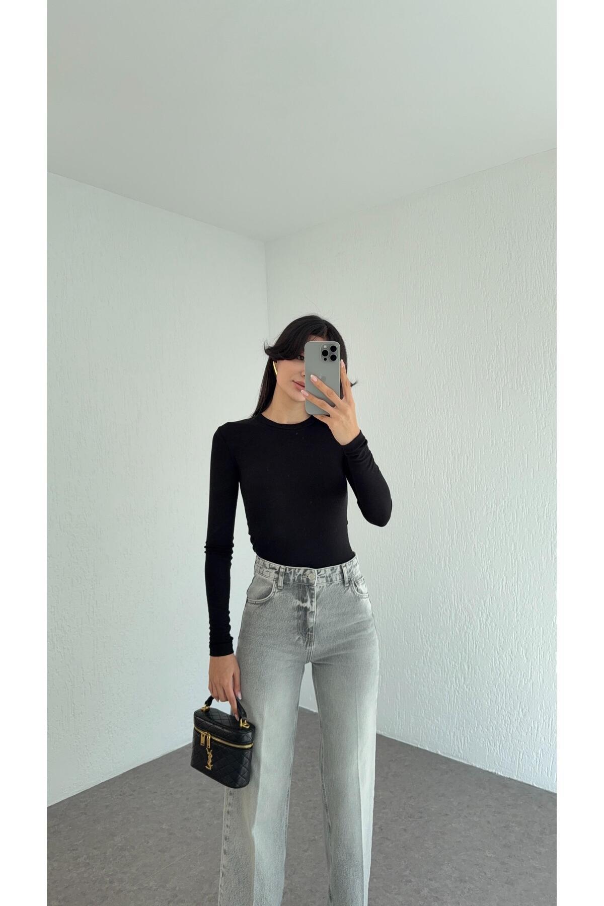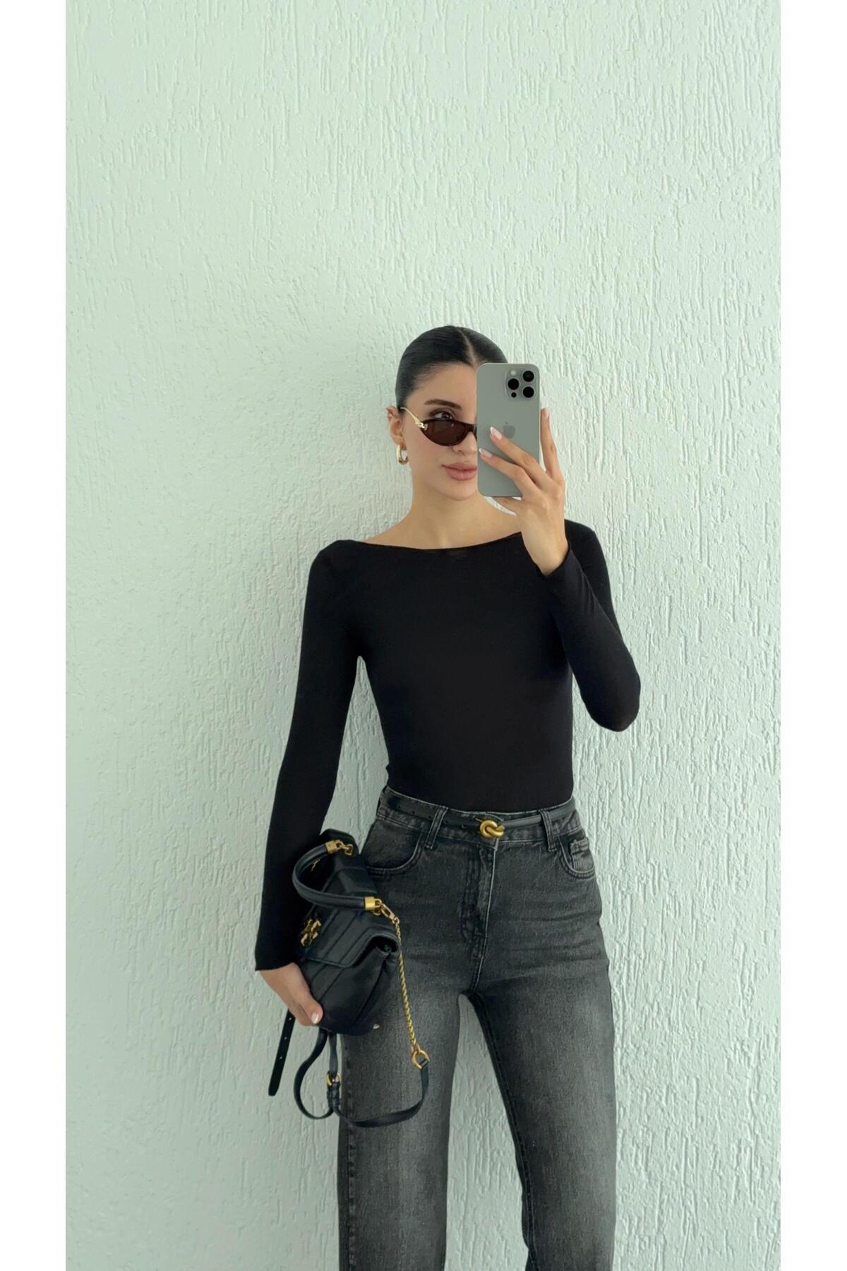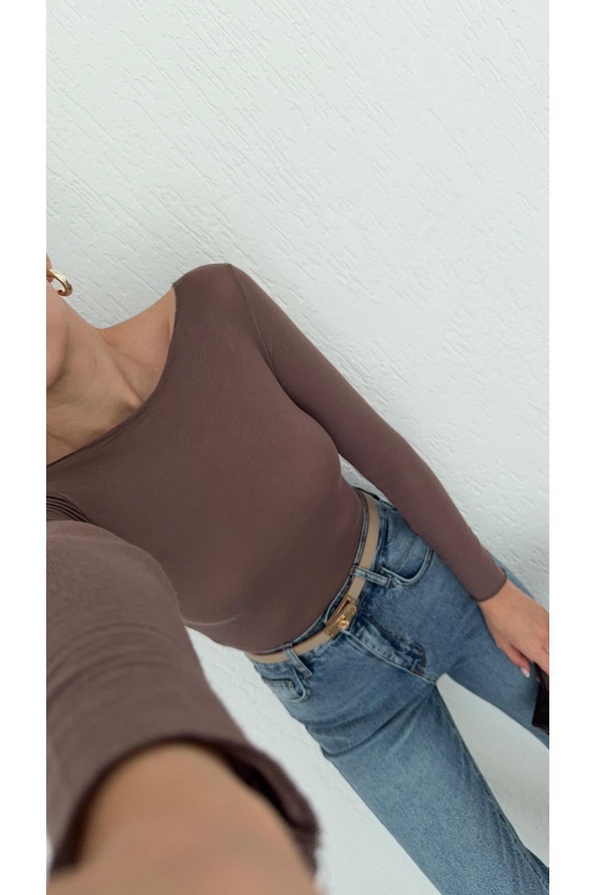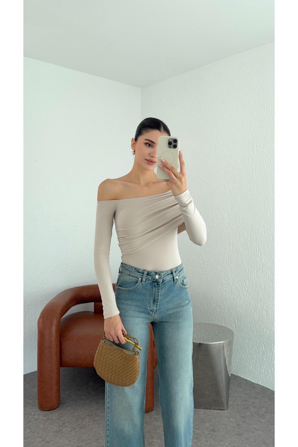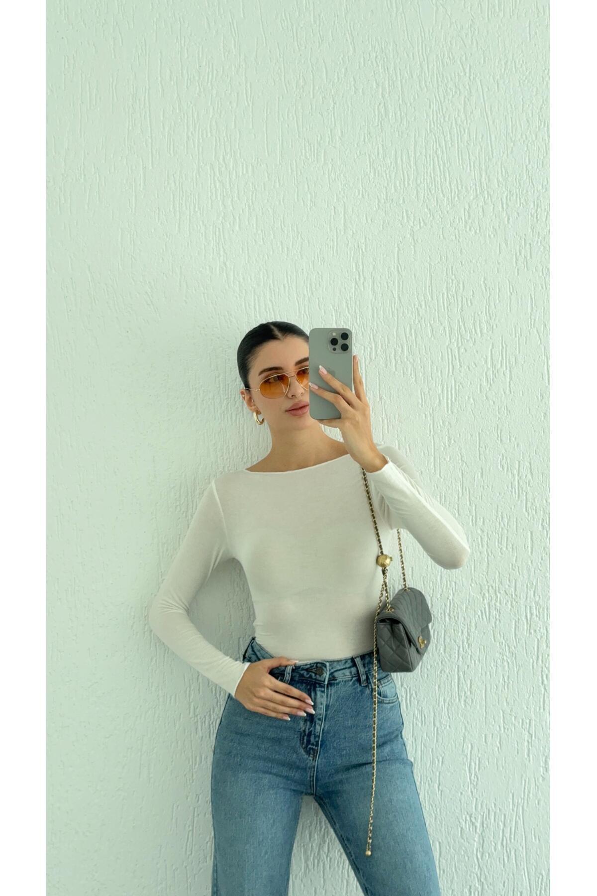 Kayık Yaka Transparan Modal Vizon Basic Bluz Kayık Yaka Transparan Modal Vizon Basic Bluz 11995 L