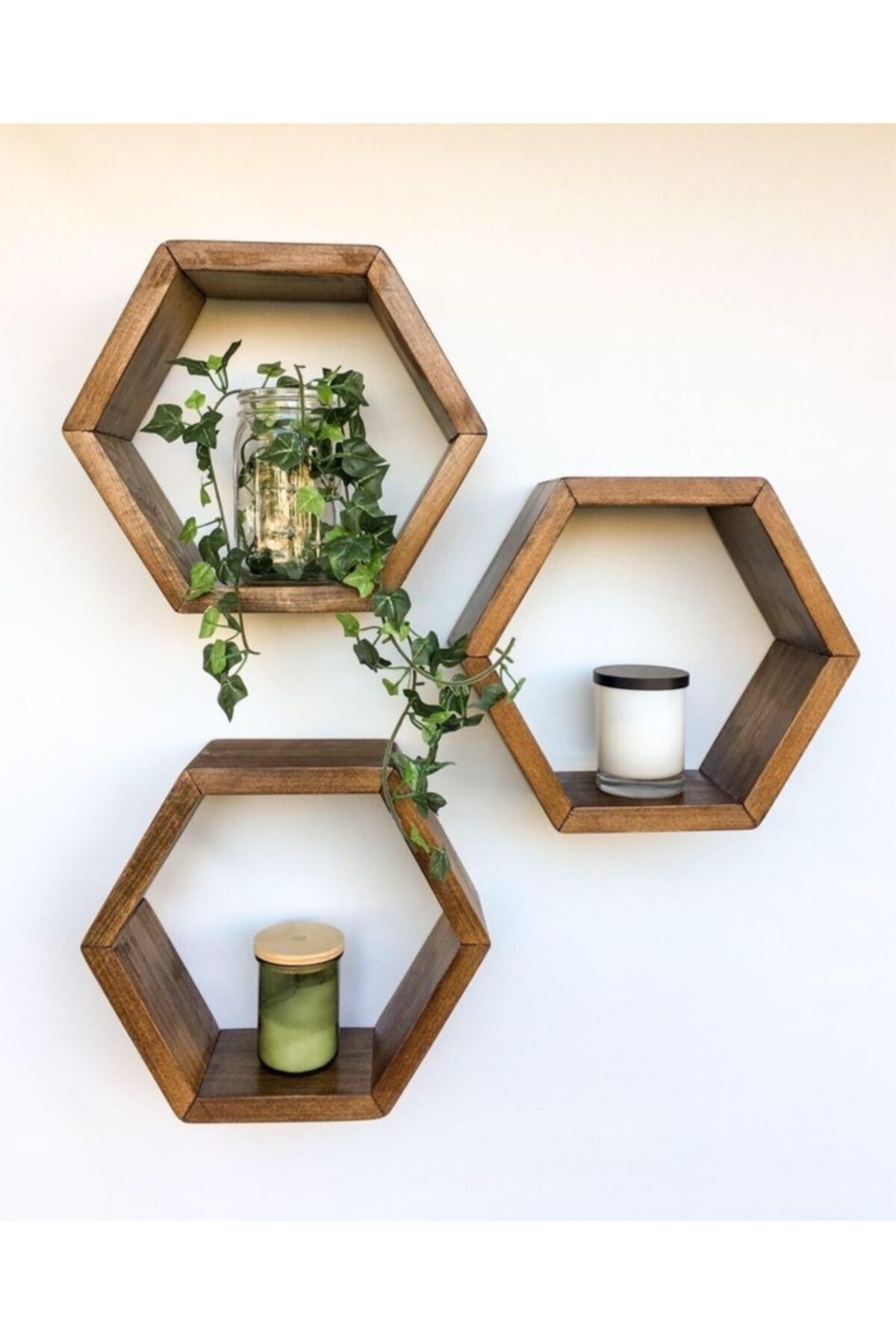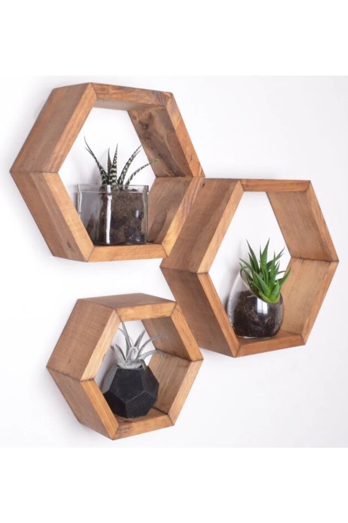 Ahşap Altıgen Duvar Rafı Ahşap Altıgen Duvar Rafı A2 21 x 21