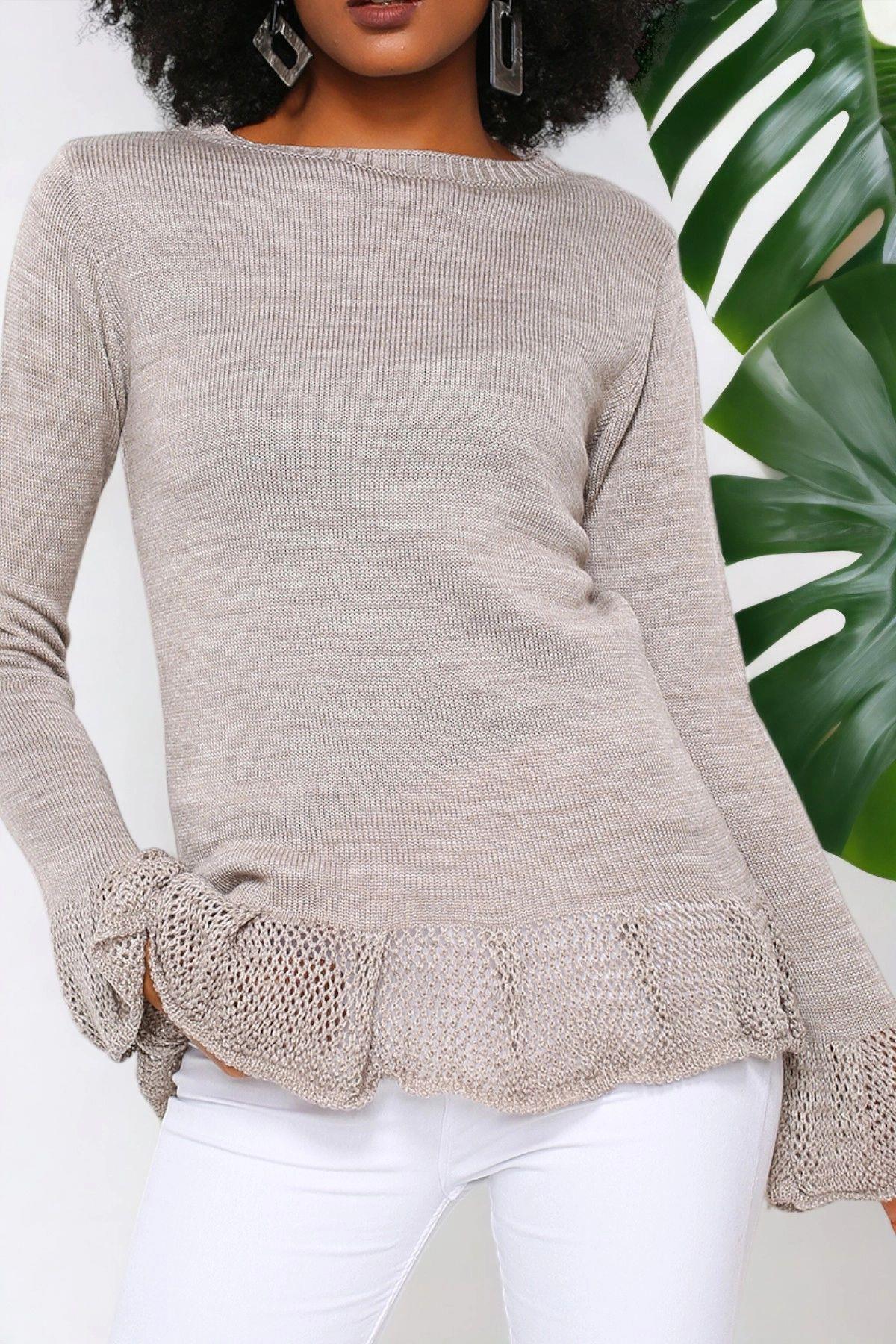 Kadın Fırfır Yaka İsoanyol Kol Detaylı Triko Hırka Kadın Fırfır Yaka İsoanyol Kol Detaylı Triko Hırka m48485858mt Standart