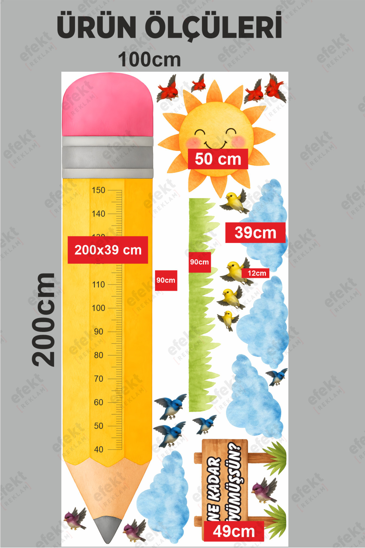 Ne Kadar Büyümüşsün Mega Kalem Boy cetveli Anaokulu-Kreş Çocuk Odası Duvar Yapışkanlı Sticker Seti Ne Kadar Büyümüşsün Mega Kalem Boy cetveli Anaokulu-Kreş Çocuk Odası Duvar Yapışkanlı Sticker Seti NKB2025 100 x 200
