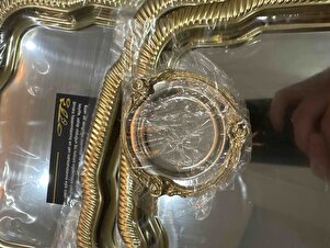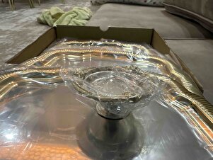 Gümüş Metal Kaplama Kahve Yanı Lokumluk | Ayaklı, Gold Çerçeveli Şık Sunumluk Gümüş Metal Kaplama Kahve Yanı Lokumluk | Ayaklı, Gold Çerçeveli Şık Sunumluk YRN2161 تک سایز