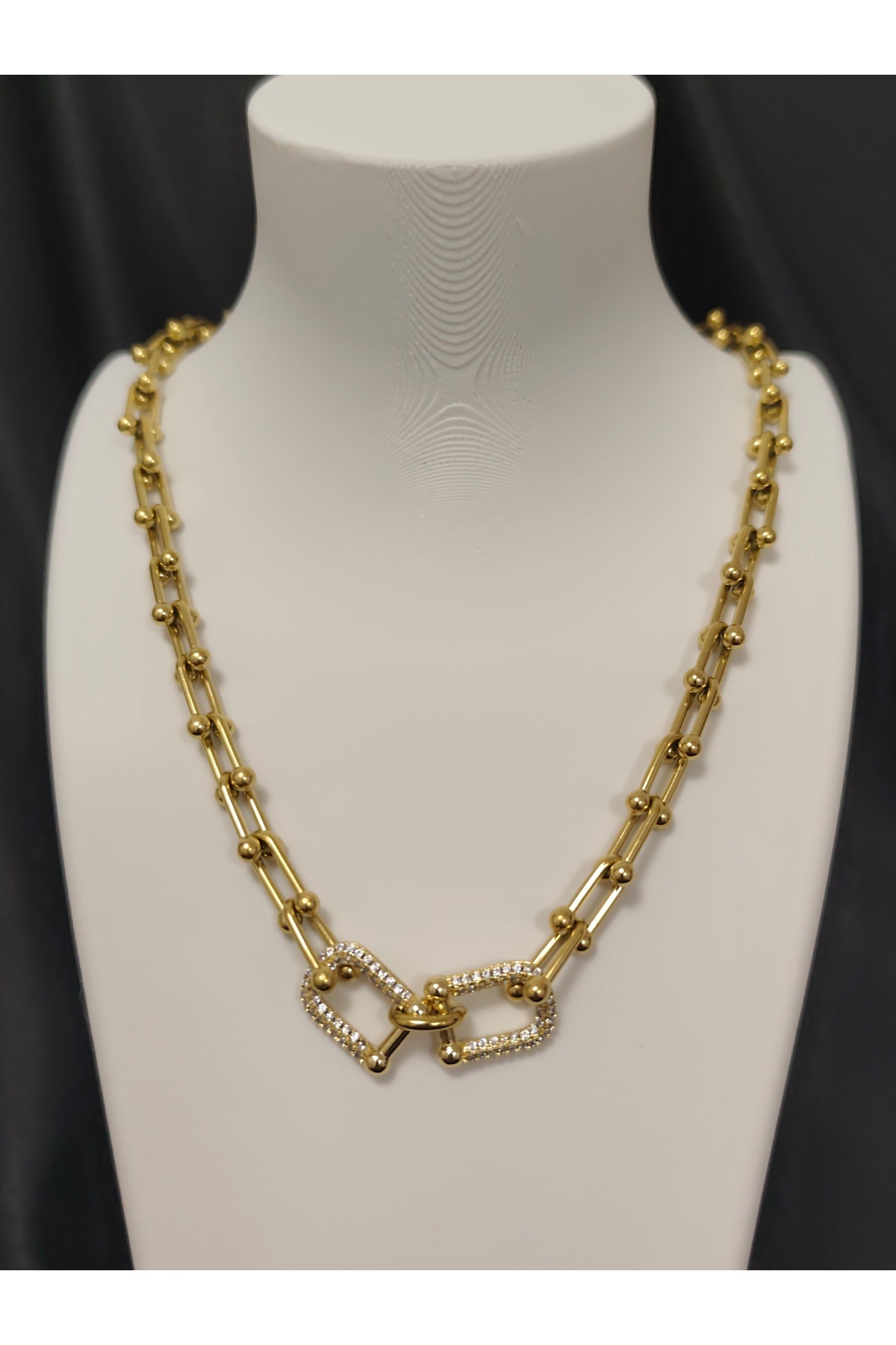 ZİRKON TAŞ DETAYLI ATAÇ ÇELİK KOLYE ZİRKON TAŞ DETAYLI ATAÇ ÇELİK KOLYE KL00063 50 cm