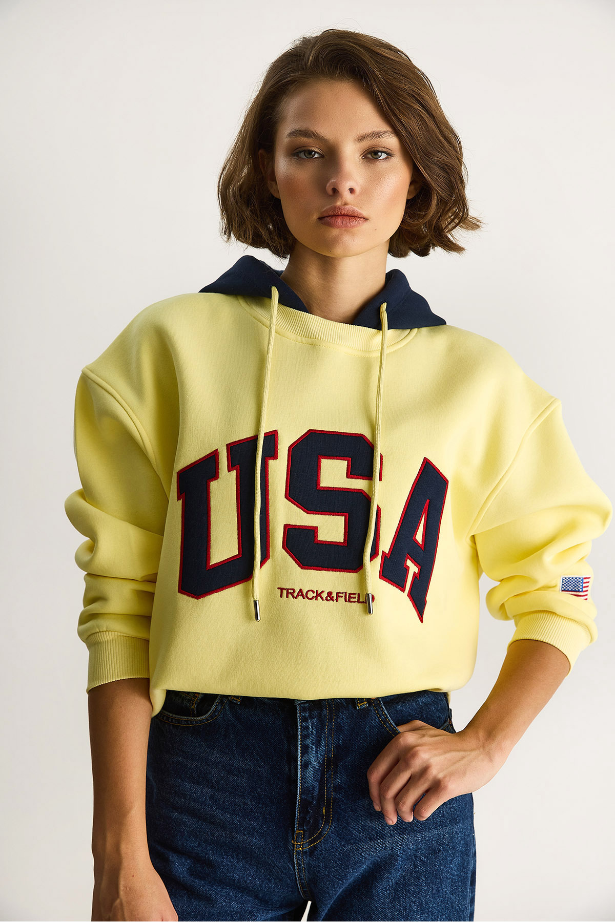 Kadın USA İşlemeli Şardonlu Kapüşonlu Salaş Sweatshirt 10010 60283527 Kadın USA İşlemeli Şardonlu Kapüşonlu Salaş Sweatshirt 10010 60283527 L