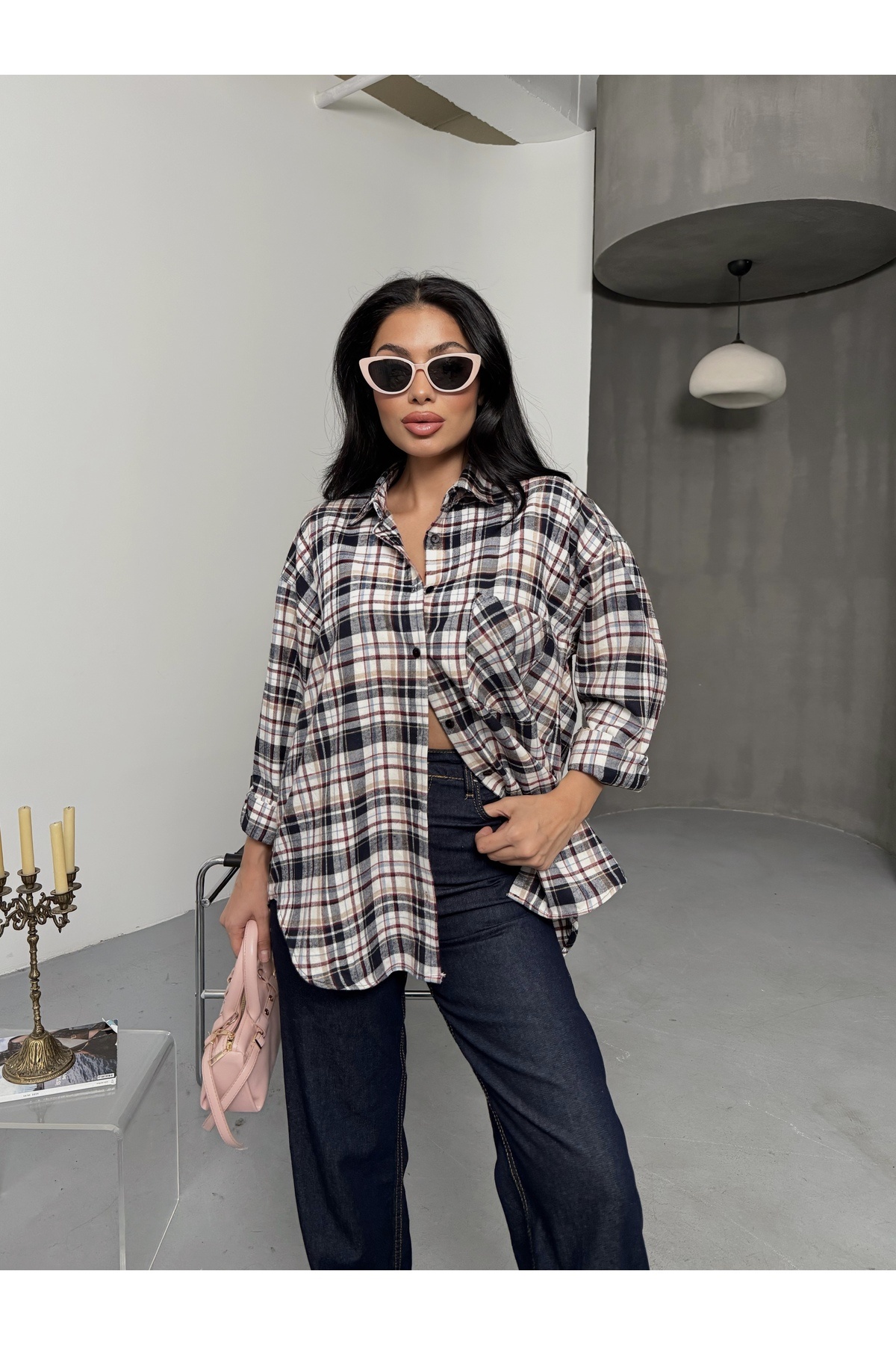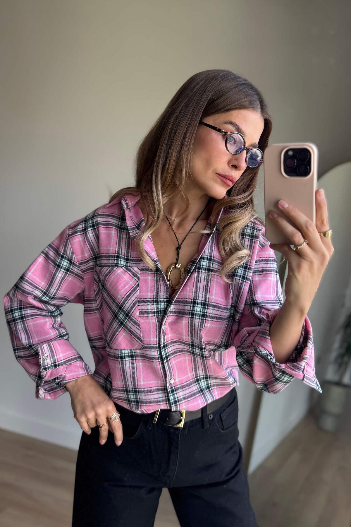 Pembe Ekoseli Oduncu Gömlek Pembe Ekoseli Oduncu Gömlek GMK1032 L