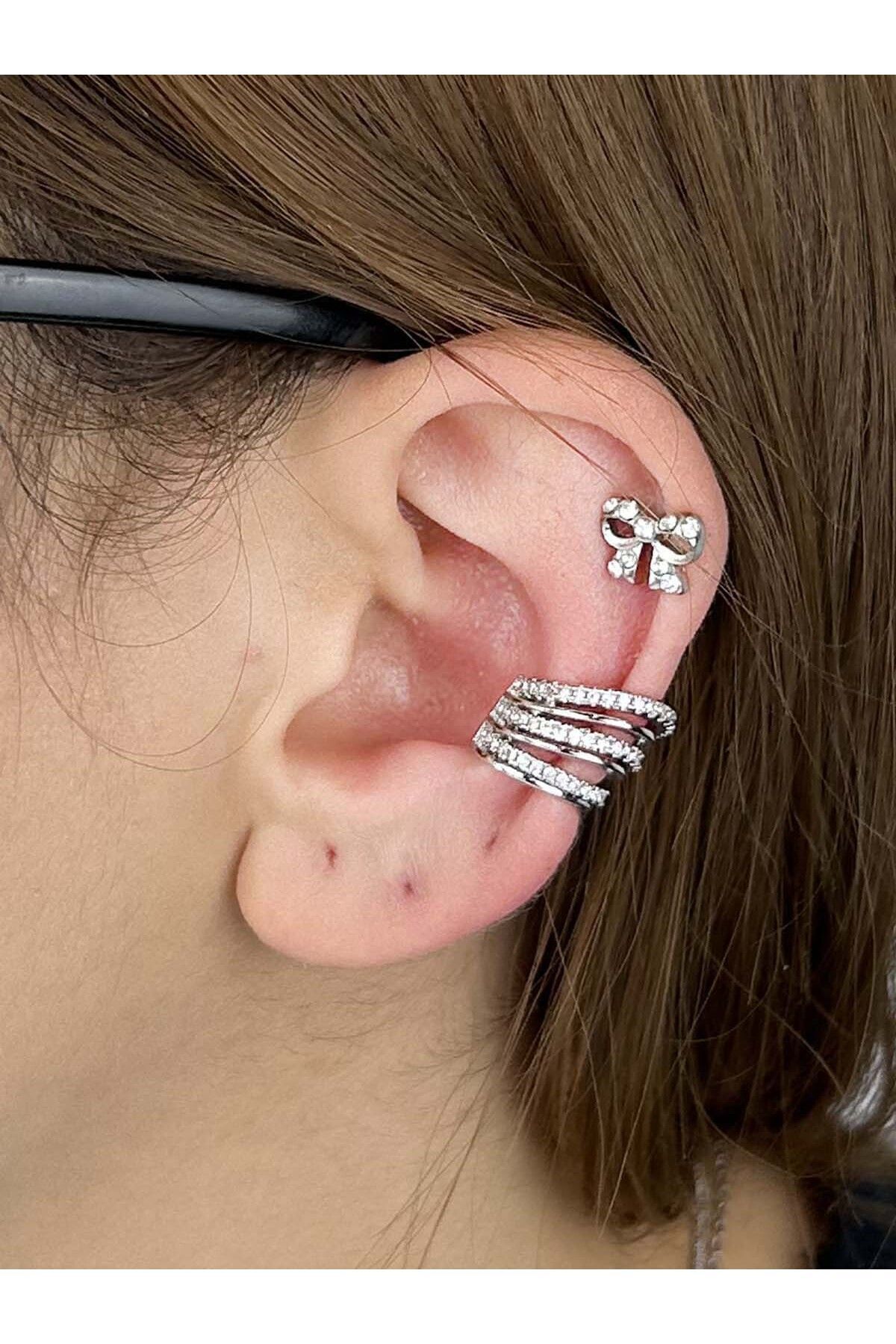 Gold Deniz Kabuğu ve Yıldız Motifli Dörtlü Sallantılı ve Kıkırdak Küpe Gold Deniz Kabuğu ve Yıldız Motifli Dörtlü Sallantılı ve Kıkırdak Küpe dörtlü küpe تک سایز