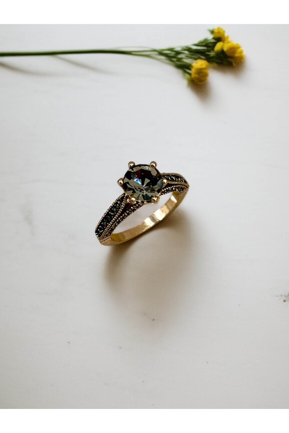 Kristal Taş Işlemeli Tek Taş Yüzük Kristal Taş Işlemeli Tek Taş Yüzük FAYRA-A6076FCZ 6