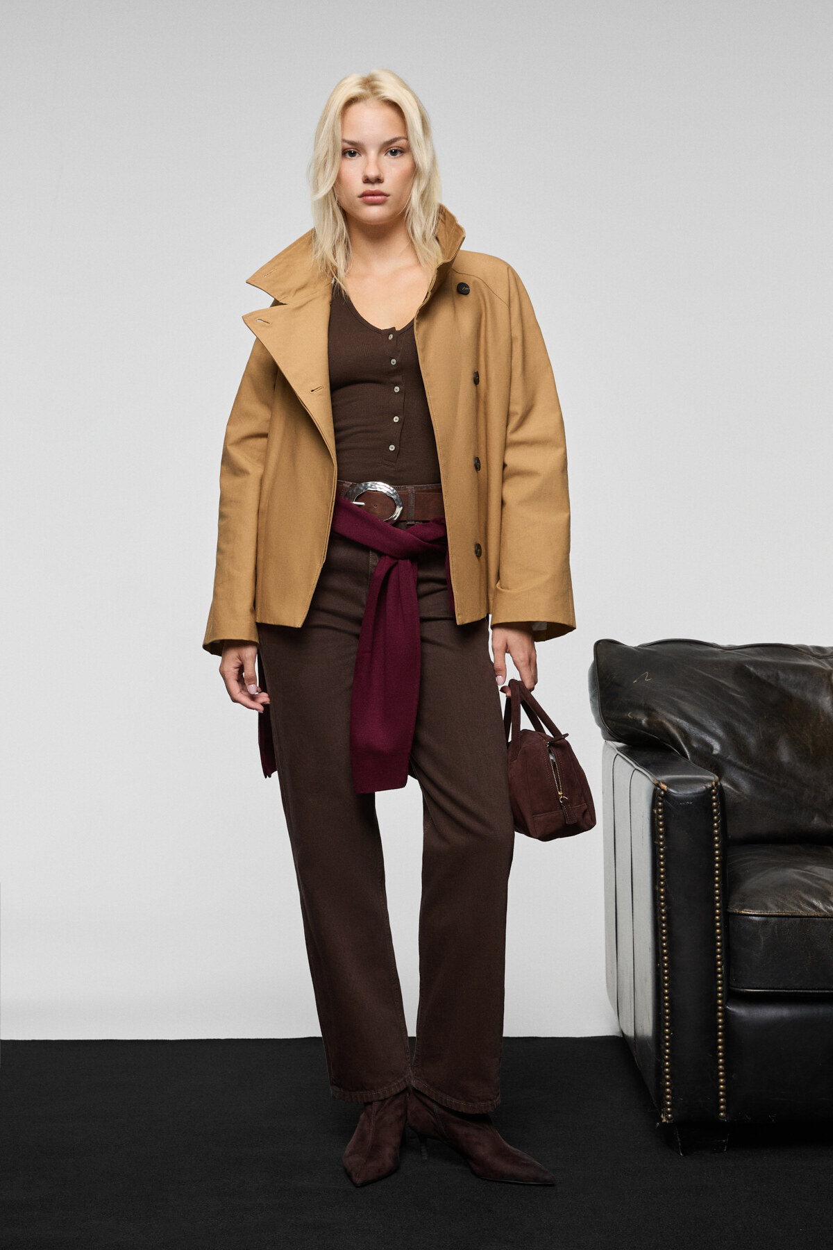 RENAVE Kadın Uzun Kollu Esnek Kumaşlı Düğme Ve Çıtçıt Detaylı Koyu Kahverengi Bluz RENAVE Kadın Uzun Kollu Esnek Kumaşlı Düğme Ve Çıtçıt Detaylı Koyu Kahverengi Bluz RENAVE01012025 XL