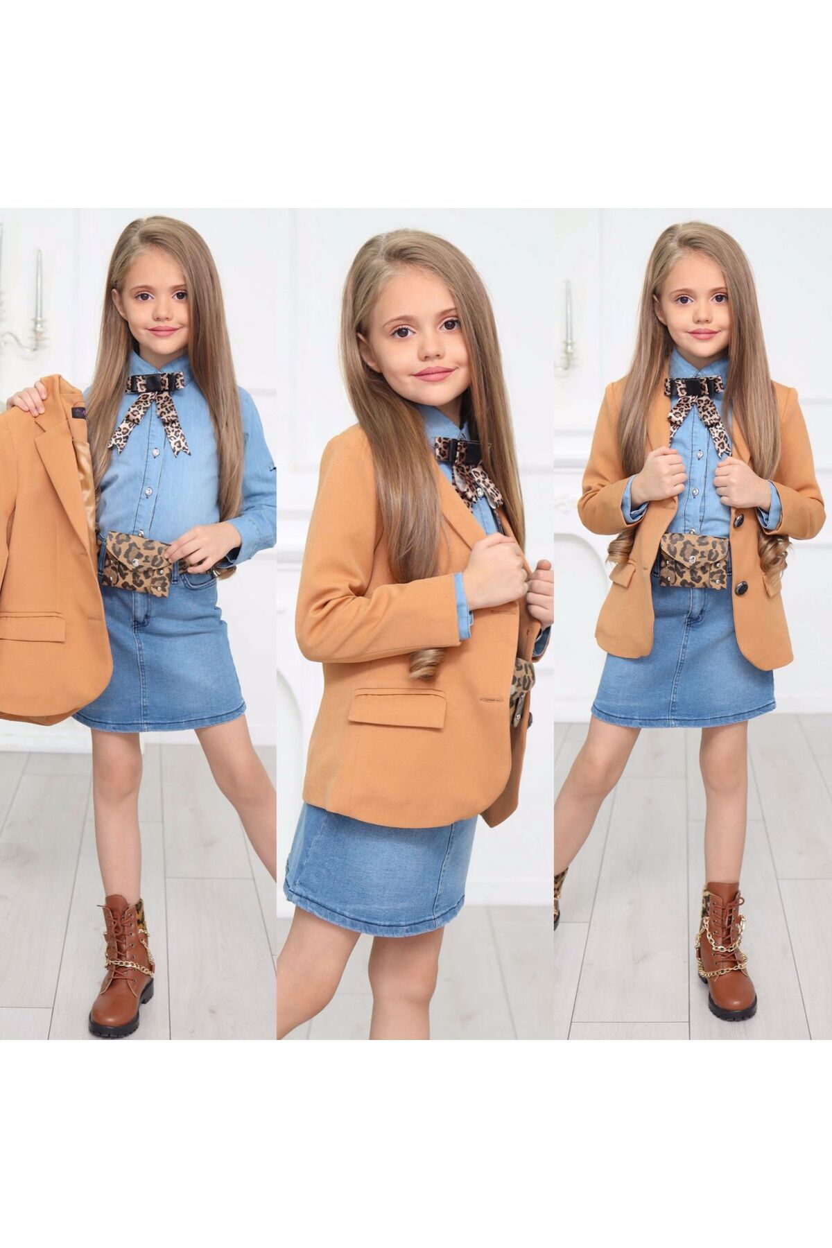 Kız Çocuk 5 Parça Şıklık Seti – Kot Gömlek, Kot Etek, Ceket, Leopar Çanta Kemer + Broş / 3-12 Yaş Kız Çocuk 5 Parça Şıklık Seti – Kot Gömlek, Kot Etek, Ceket, Leopar Çanta Kemer + Broş / 3-12 Yaş 31480 11-12 Yaş
