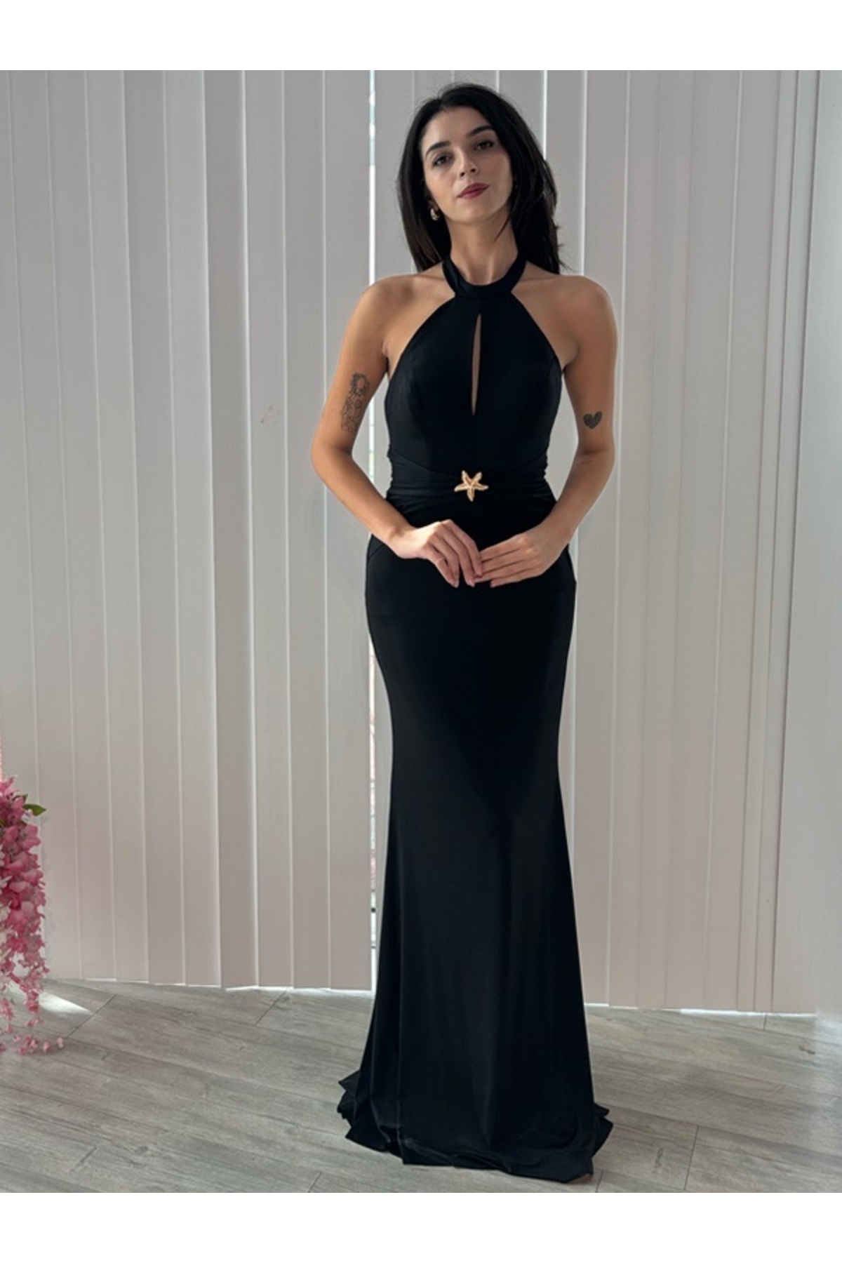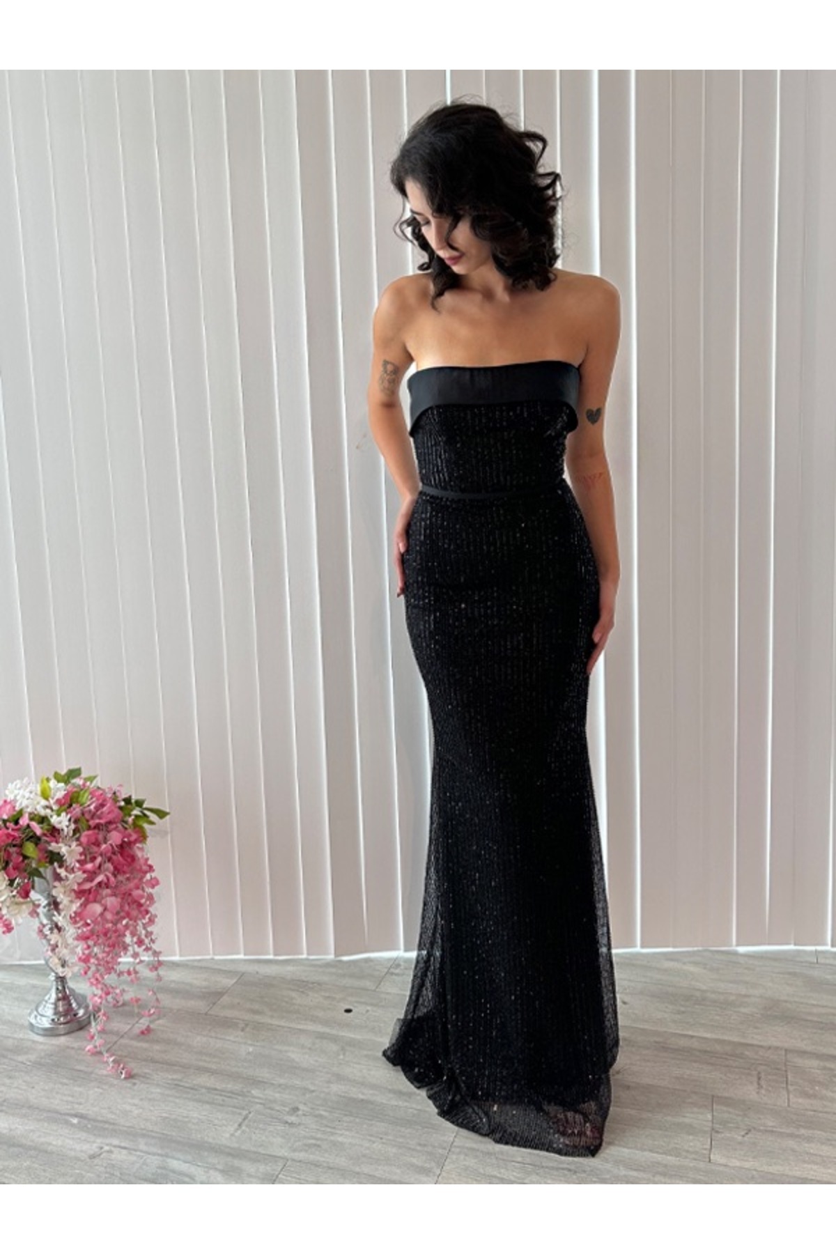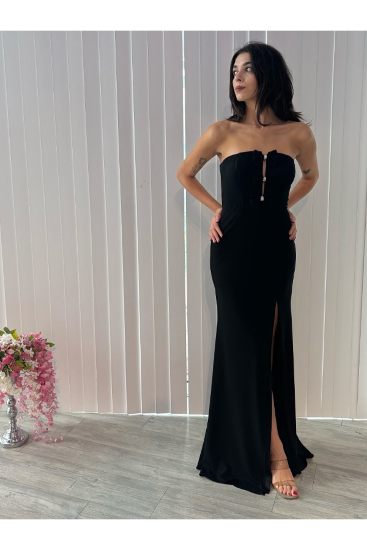 Siyah dantel detaylı straplez elbise Siyah dantel detaylı straplez elbise 0629 38