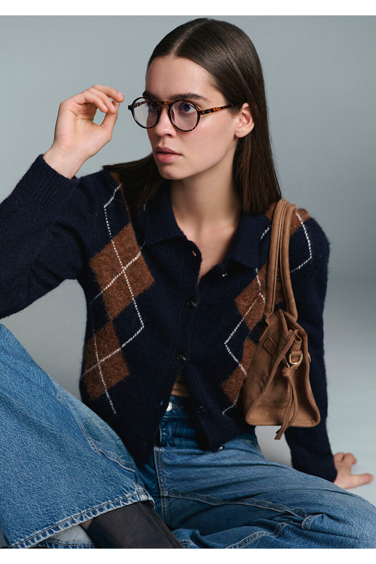 Argyle Desenli Örgü Hırka Argyle Desenli Örgü Hırka 239407 XS-S
