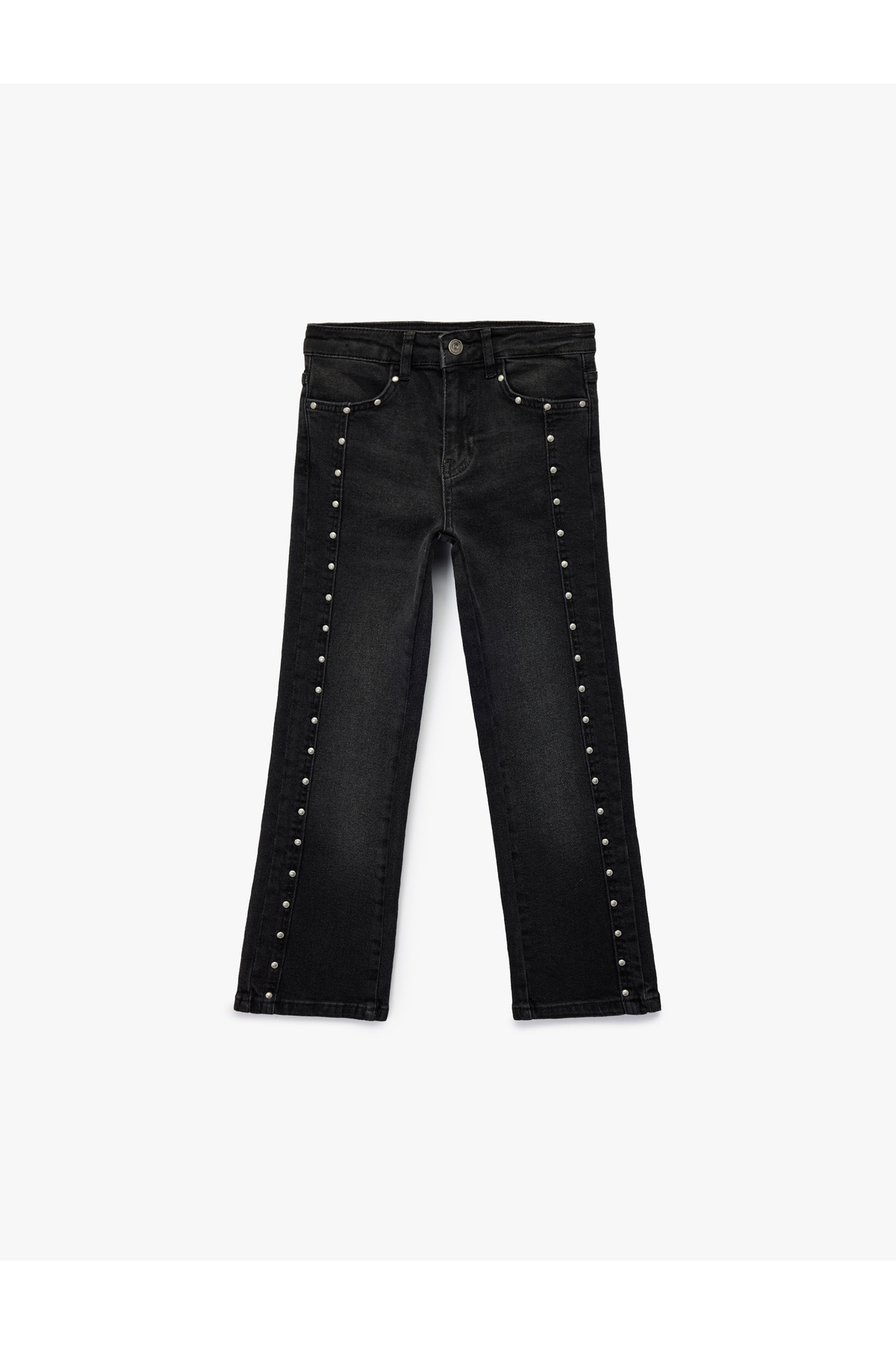 Pamuklu Loose Fit Zımba Detaylı Geniş Paça Denim Pantolon Pamuklu Loose Fit Zımba Detaylı Geniş Paça Denim Pantolon 6WKG40073AD 11-12 Yaş