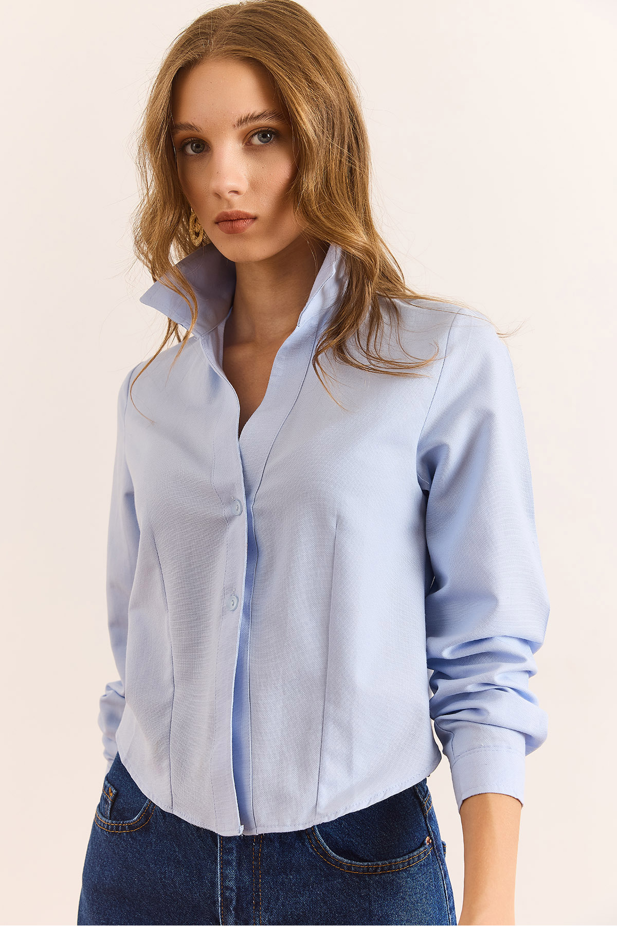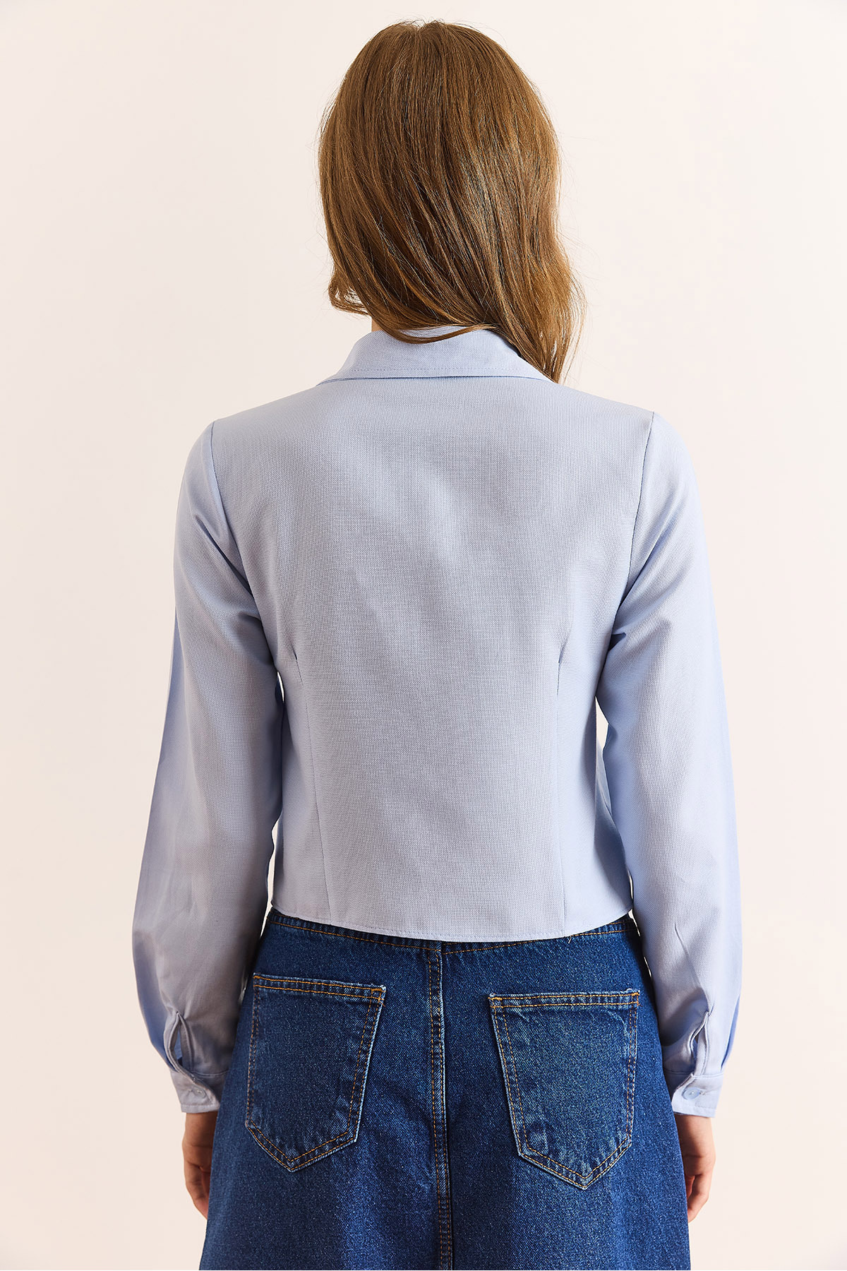 Kadın Bebe Mavi 2 Düğme Pensli Bele Oturan Crop Gömlek GML-19001392 Kadın Bebe Mavi 2 Düğme Pensli Bele Oturan Crop Gömlek GML-19001392 XL