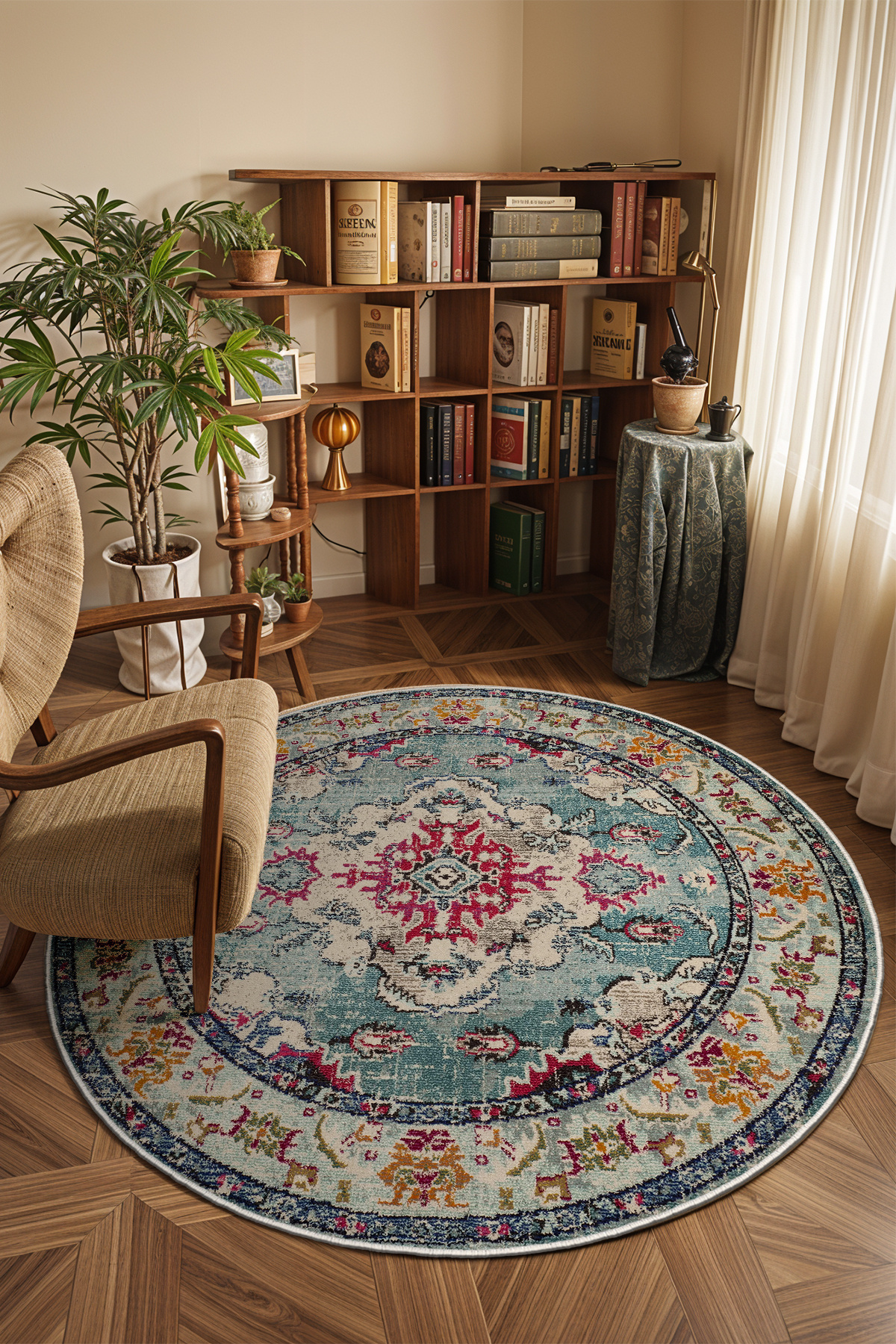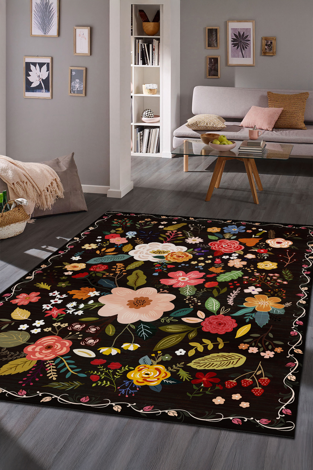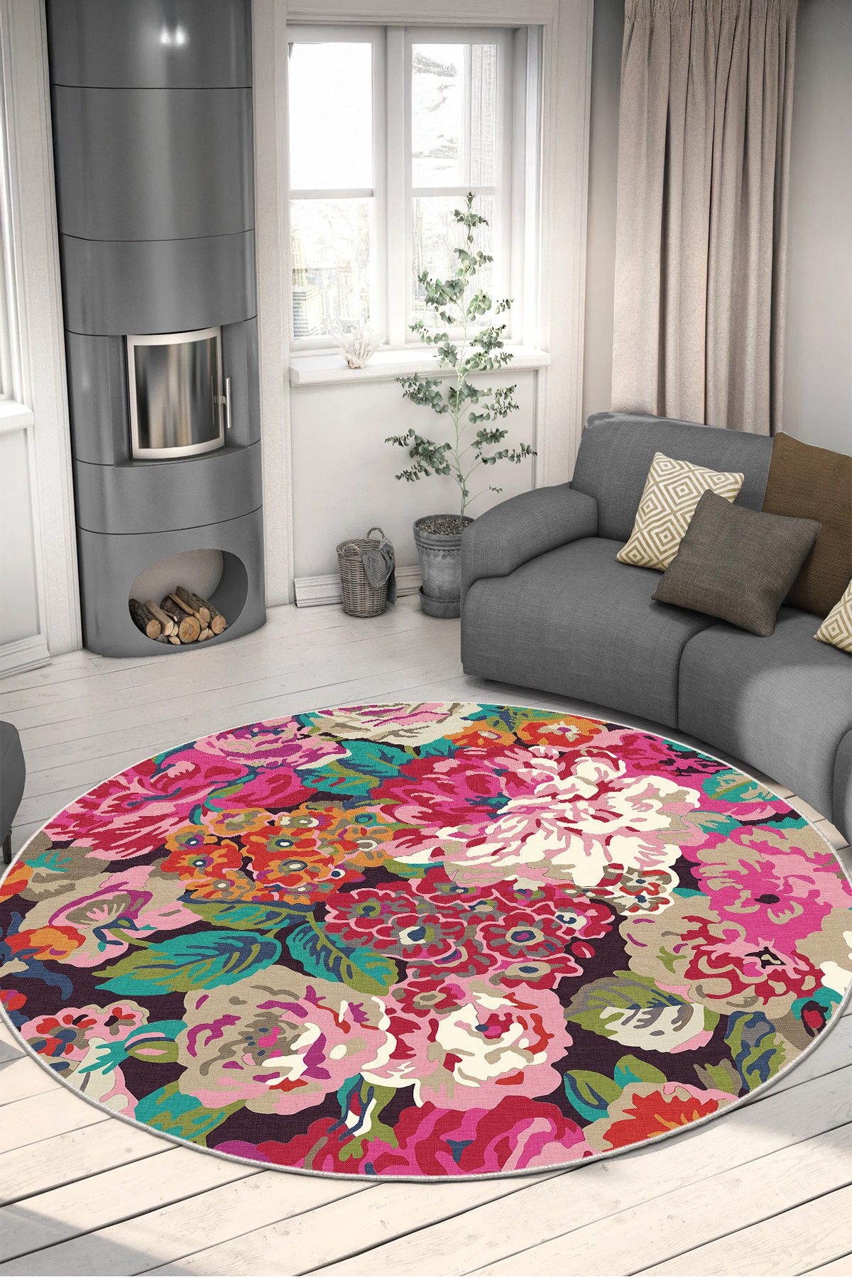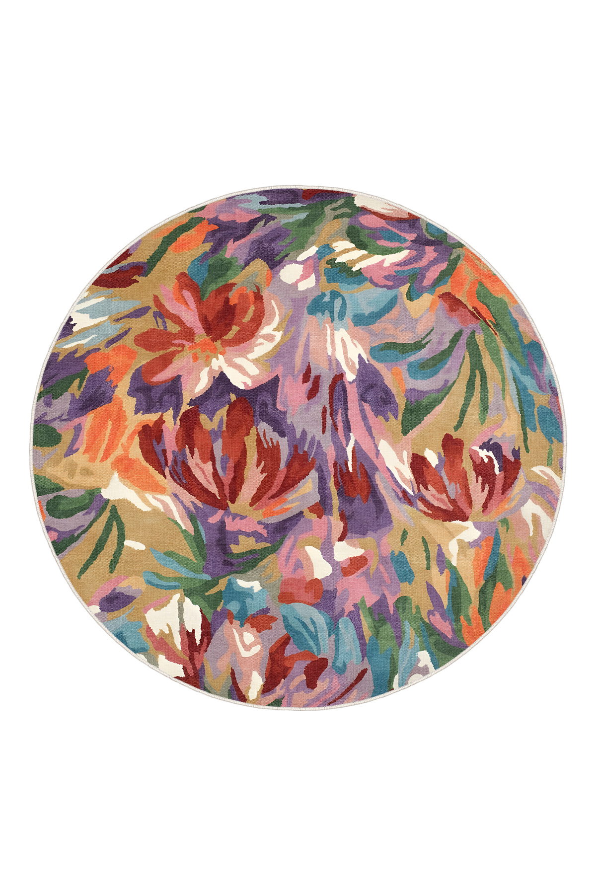 Çiçek Desenli Yıkanabilir Yuvarlak Halı Çiçek Desenli Yıkanabilir Yuvarlak Halı krm344 180 x 180