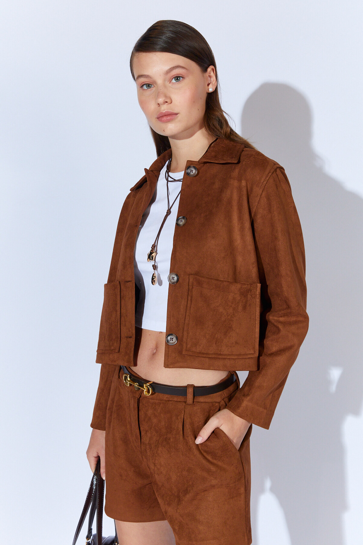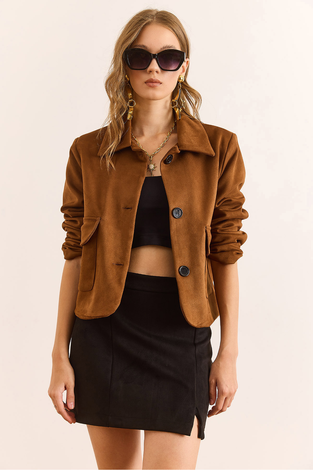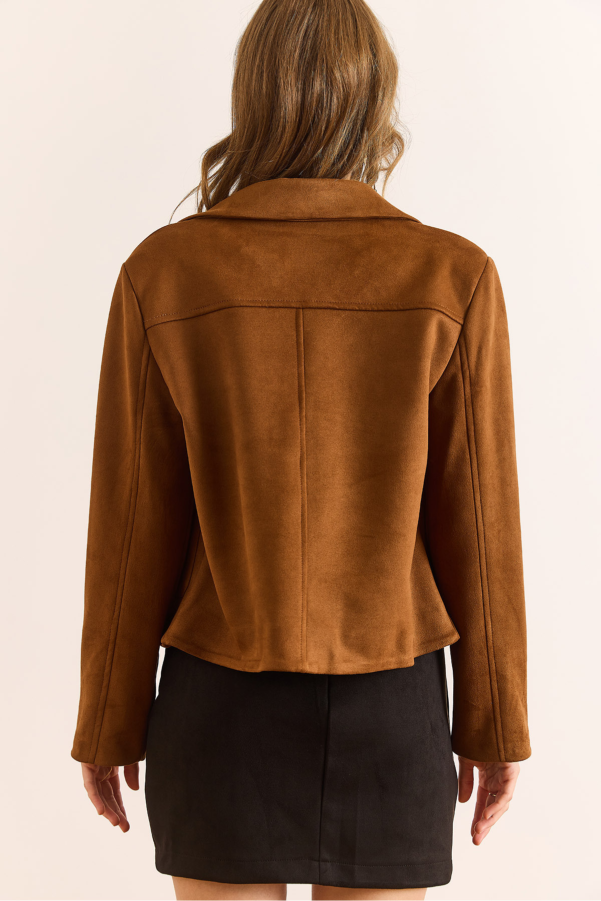 Kadın Taba Astarlı Cepli Crop Süet Ceket CKT-19000467 Kadın Taba Astarlı Cepli Crop Süet Ceket CKT-19000467 XL