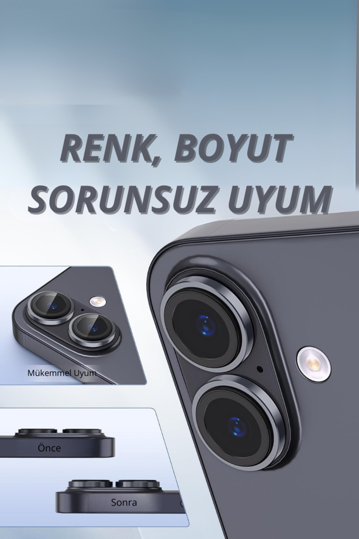(Metal) iPhone 17 Uyumlu Metal Siyah Çerçeveli Kamera Lens Koruyucu (Metal) iPhone 17 Uyumlu Metal Siyah Çerçeveli Kamera Lens Koruyucu LENS-DUZ17 تک سایز