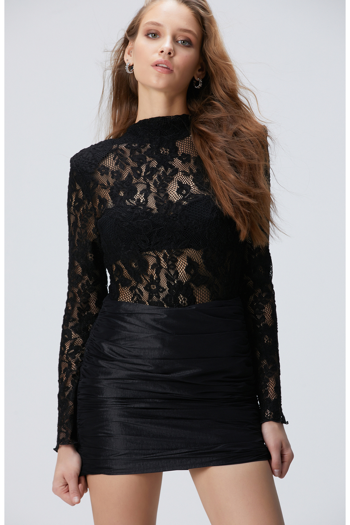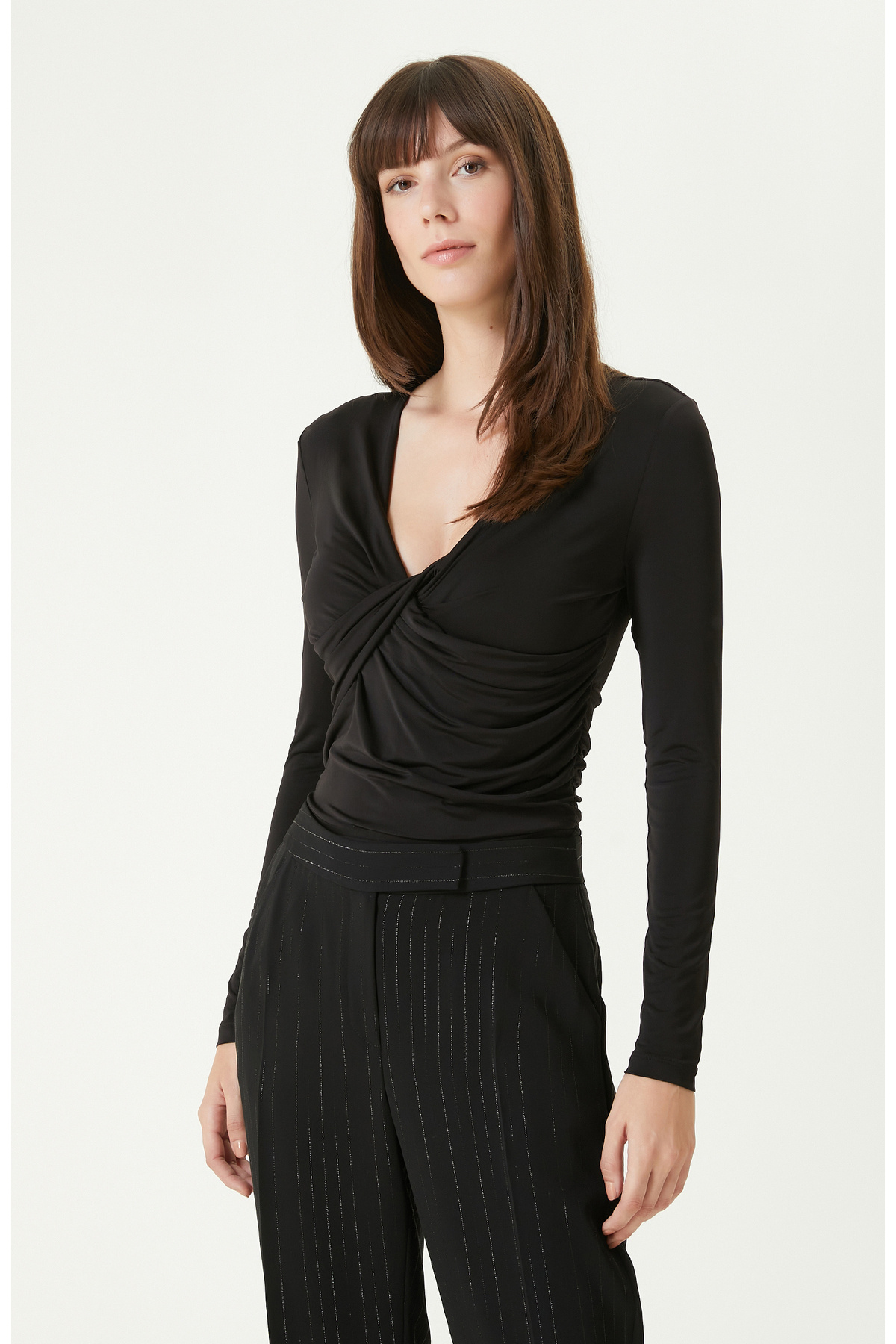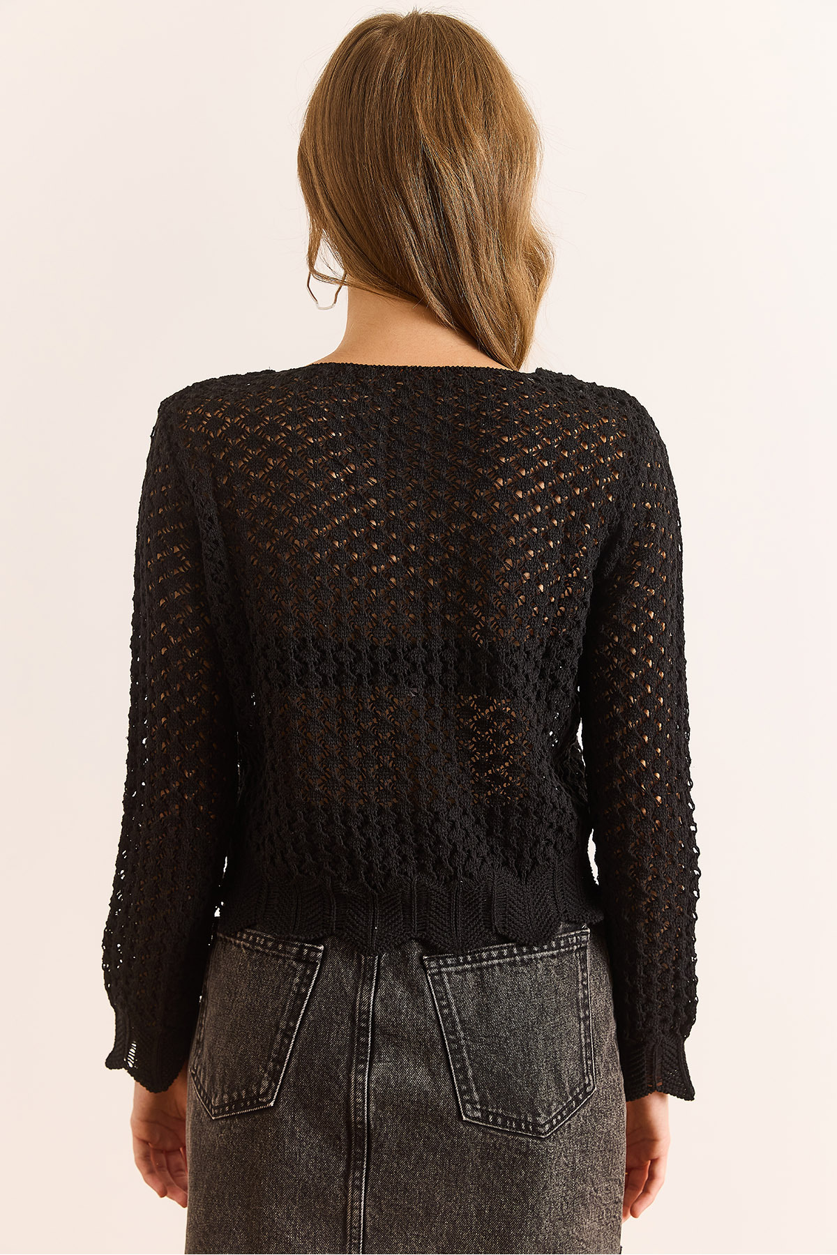 Kadın Siyah V Yaka Ajurlu Crop Mevsimlik Triko Bluz BLZ-19003123 Kadın Siyah V Yaka Ajurlu Crop Mevsimlik Triko Bluz BLZ-19003123 S/M