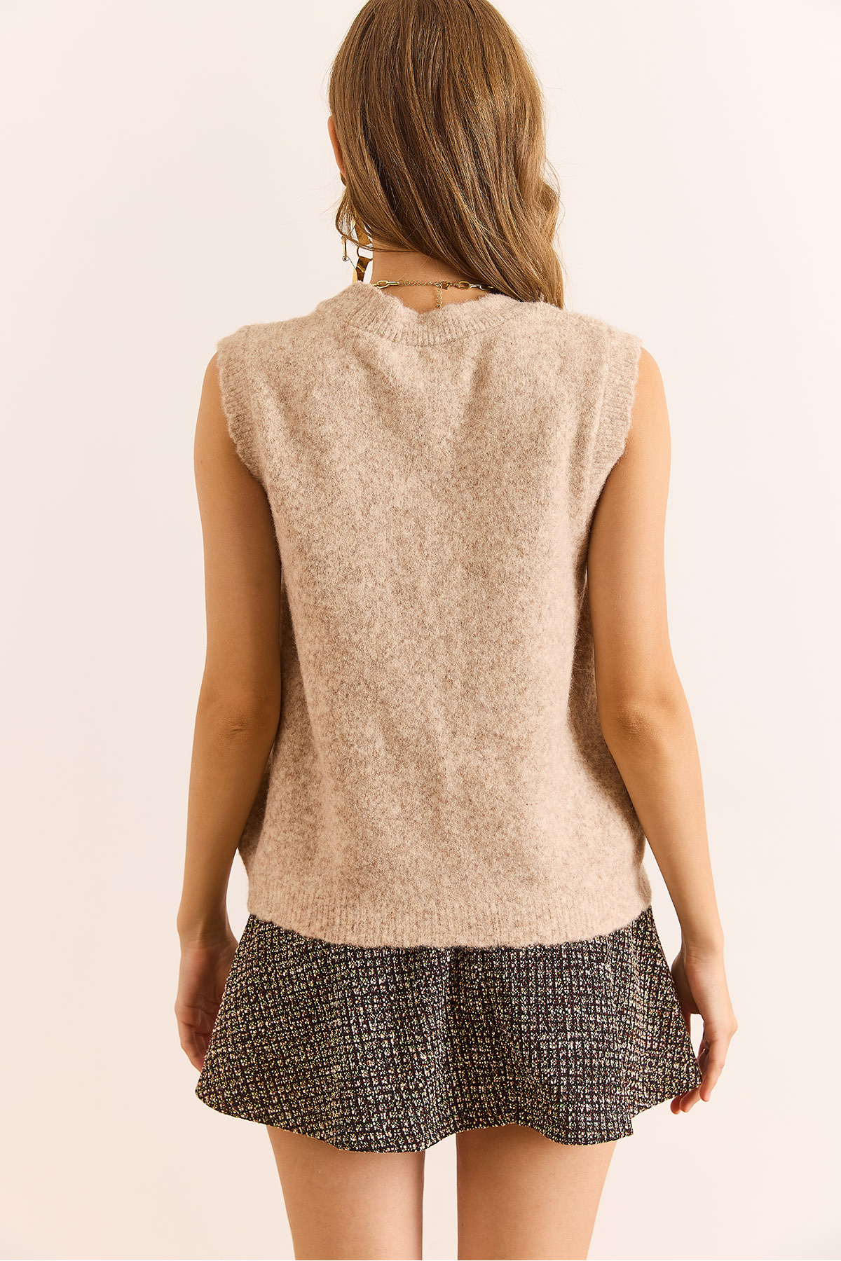 Kadın Taş Düğmeli Yumuşak Dokulu Triko Yelek YLK-19000088 Kadın Taş Düğmeli Yumuşak Dokulu Triko Yelek YLK-19000088 S/M