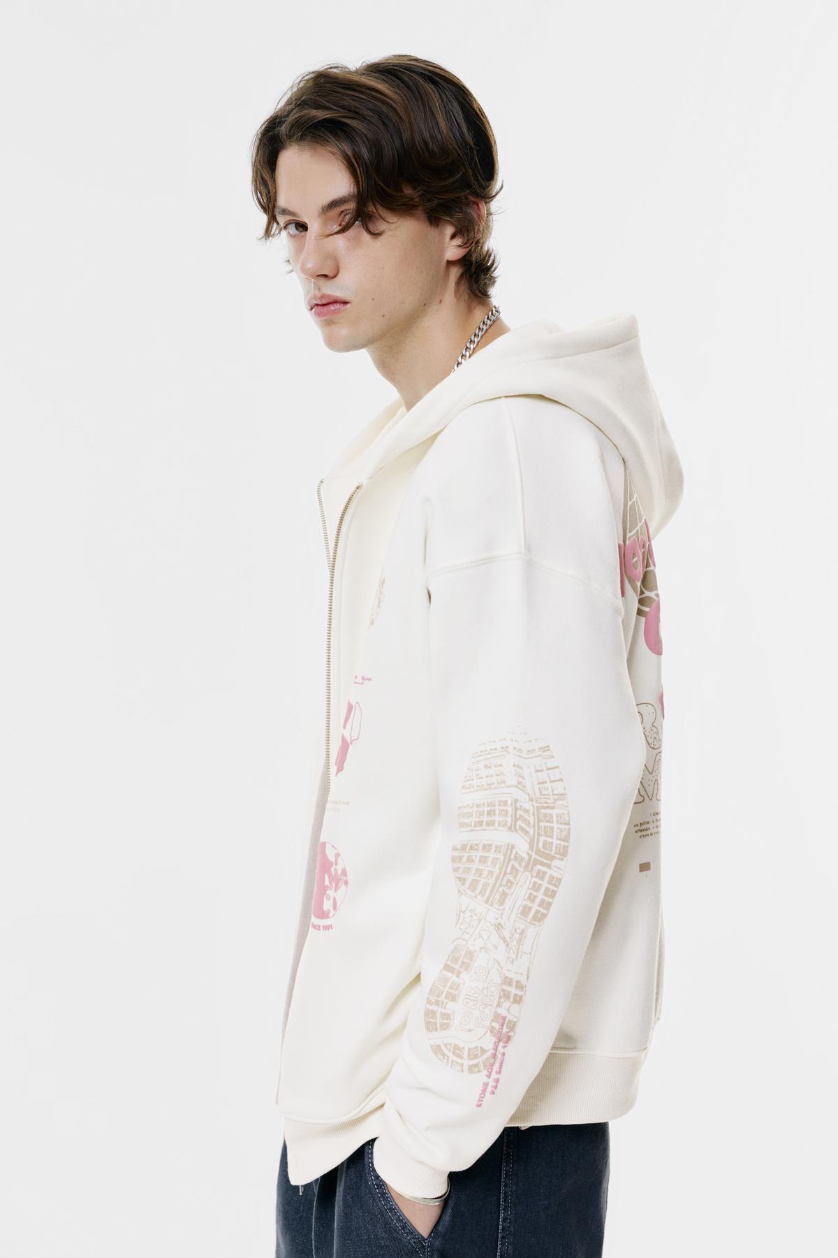 Kapüşonlu fermuarlı grafikli sweatshirt Kapüşonlu fermuarlı grafikli sweatshirt 07560919 L