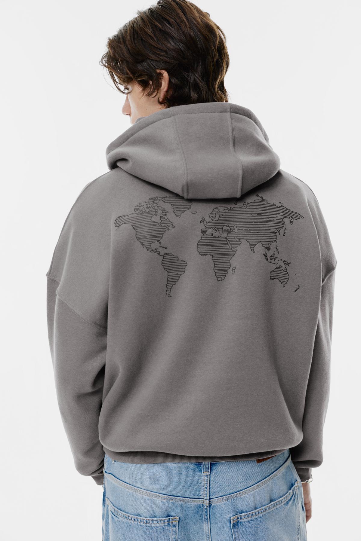 Gri harita baskılı kapüşonlu sweatshirt Gri harita baskılı kapüşonlu sweatshirt 07560546 XL