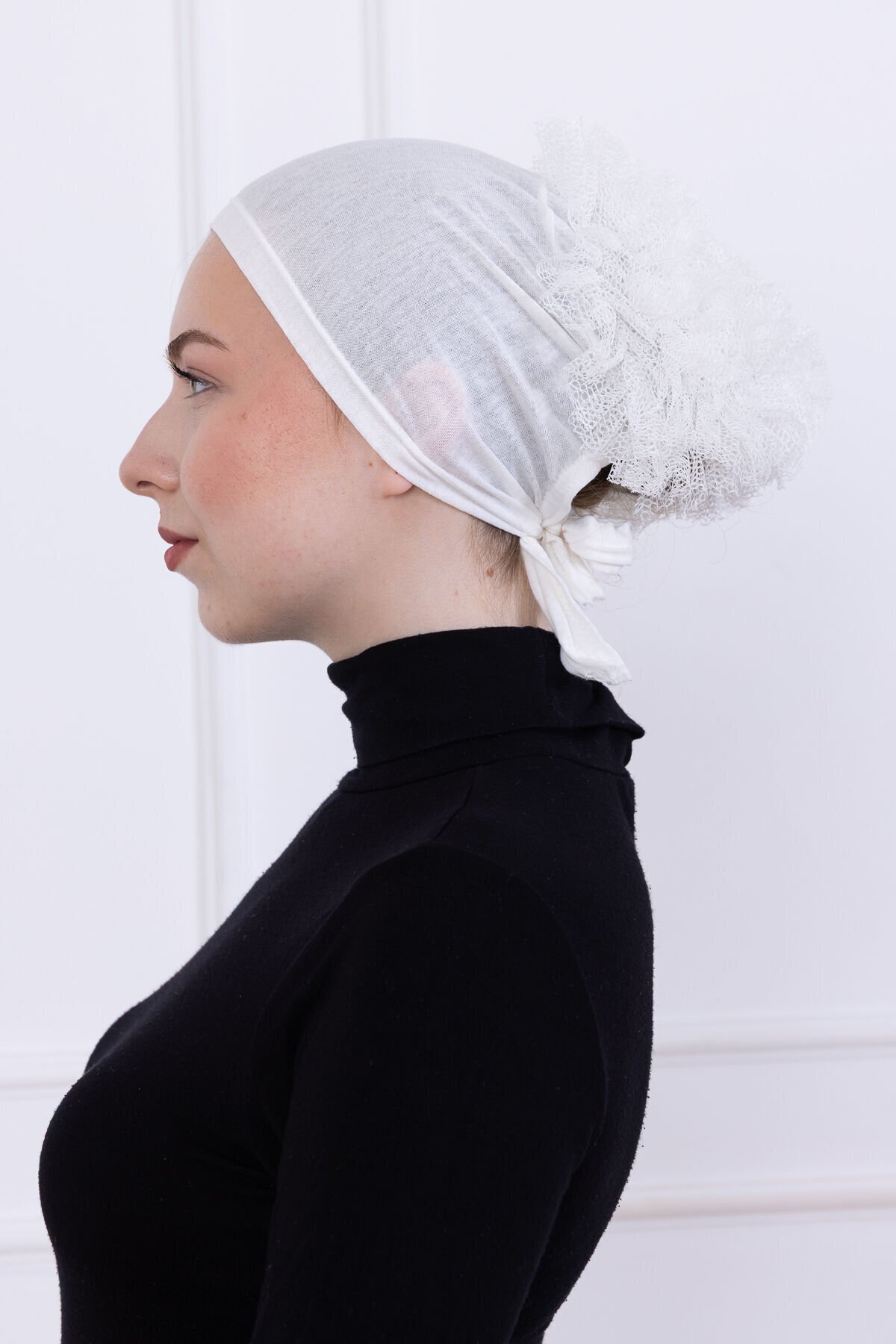 Fırfırlı Önden Dikişli Penye Bone - Kadın Tesettür Bağlamalı Topuz İç Bone-Beyaz Fırfırlı Önden Dikişli Penye Bone - Kadın Tesettür Bağlamalı Topuz İç Bone-Beyaz dikişlifirfirli Standart