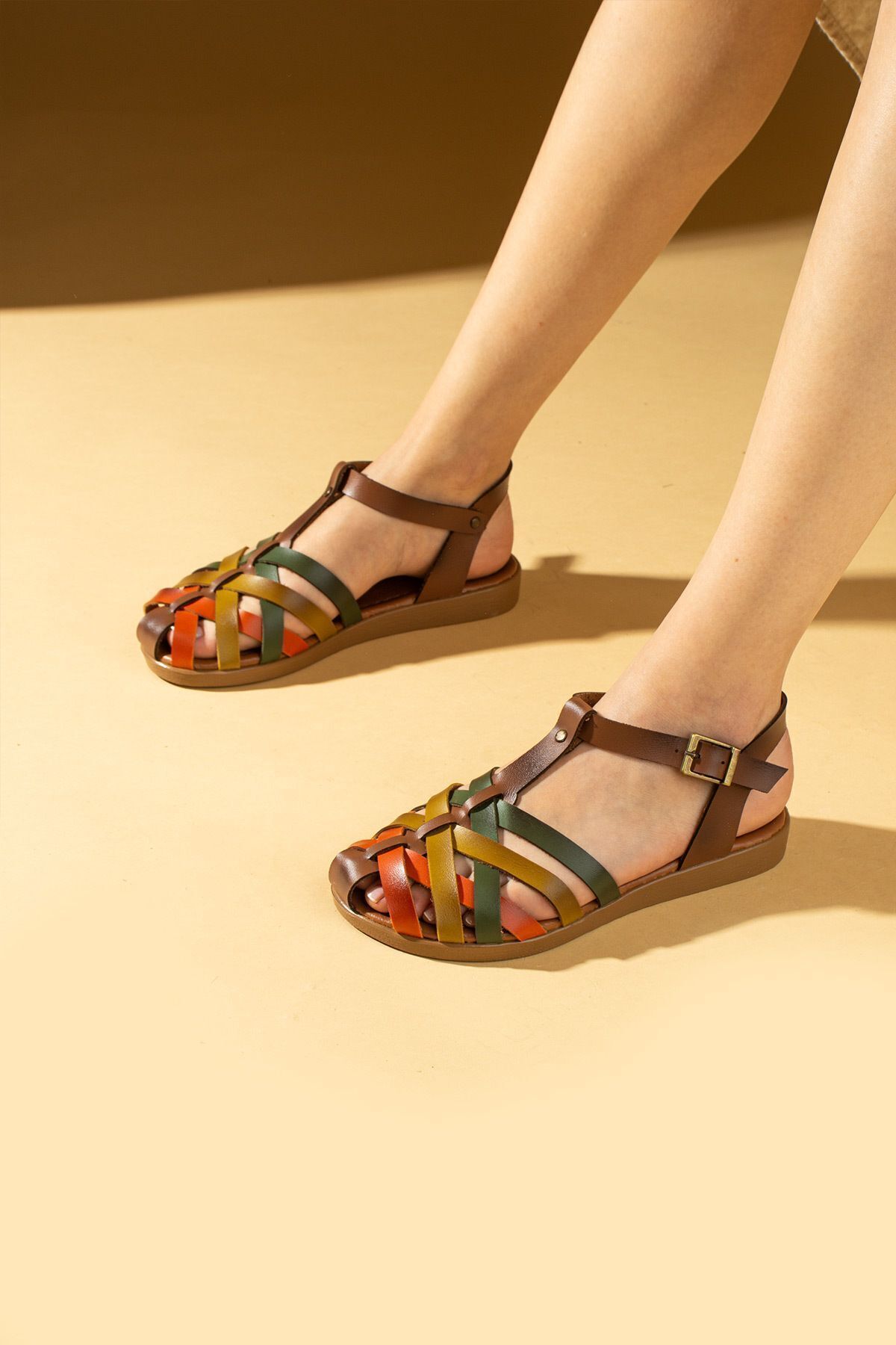Kadın Kahverengi Rahat Poli Taban Günlük Yazlık Bodrum Stil Sandalet Kadın Kahverengi Rahat Poli Taban Günlük Yazlık Bodrum Stil Sandalet VRD51-825-24 40