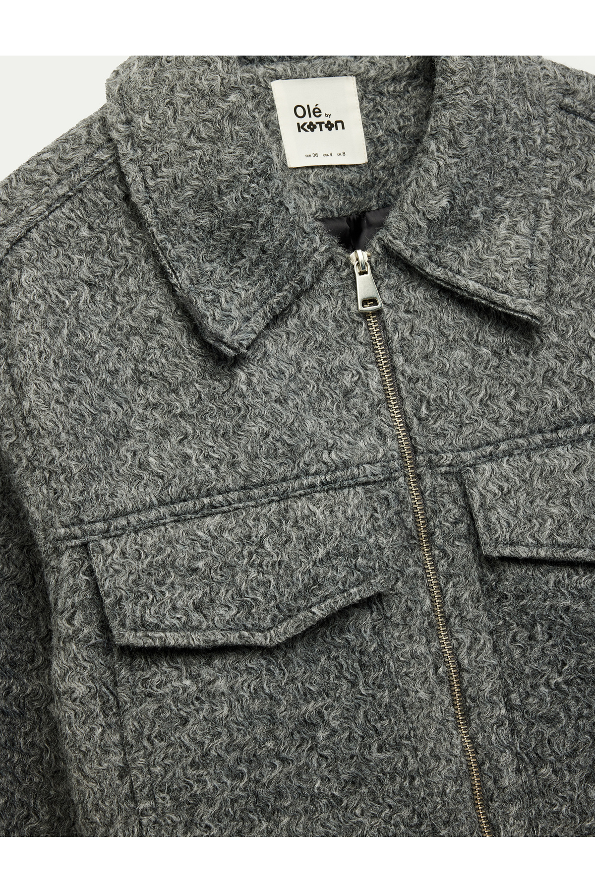 Uzun Kollu Fermuarlı Gömlek Yaka Bomber Mont Uzun Kollu Fermuarlı Gömlek Yaka Bomber Mont 6WAL20017IW 42