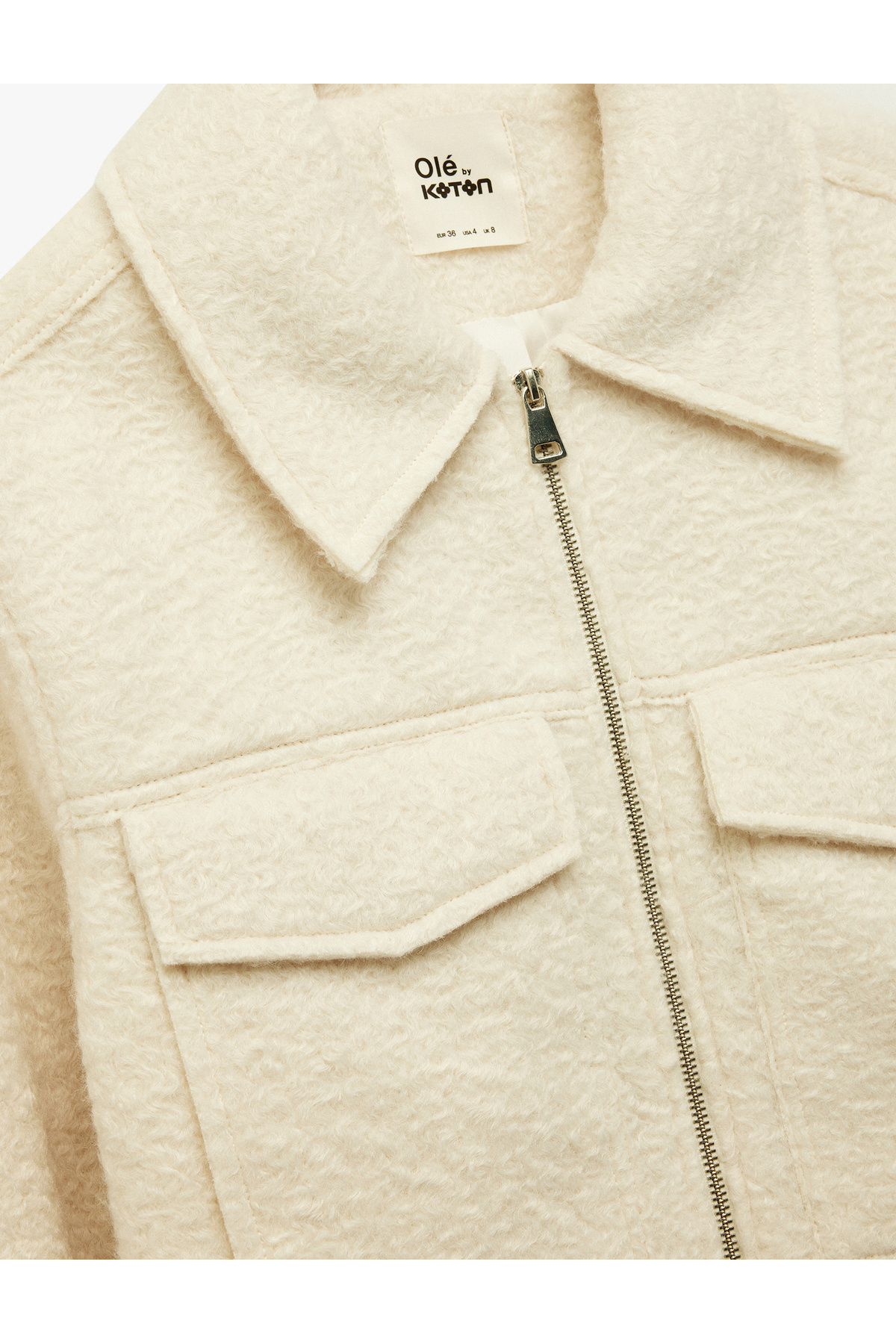 Uzun Kollu Fermuarlı Gömlek Yaka Bomber Mont Uzun Kollu Fermuarlı Gömlek Yaka Bomber Mont 6WAL20017IW 42
