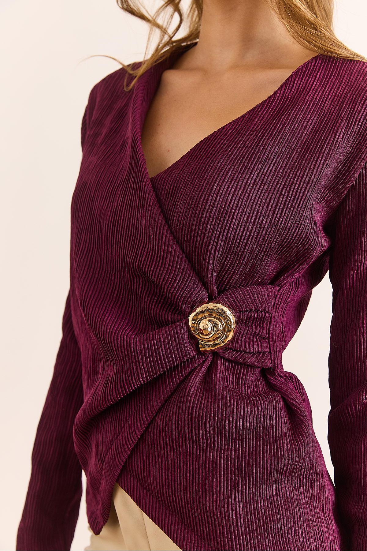 Kadın Mürdüm Aksesuar Detaylı Yumuşak Dokulu Tok Bluz BLZ-19003114 Kadın Mürdüm Aksesuar Detaylı Yumuşak Dokulu Tok Bluz BLZ-19003114 L