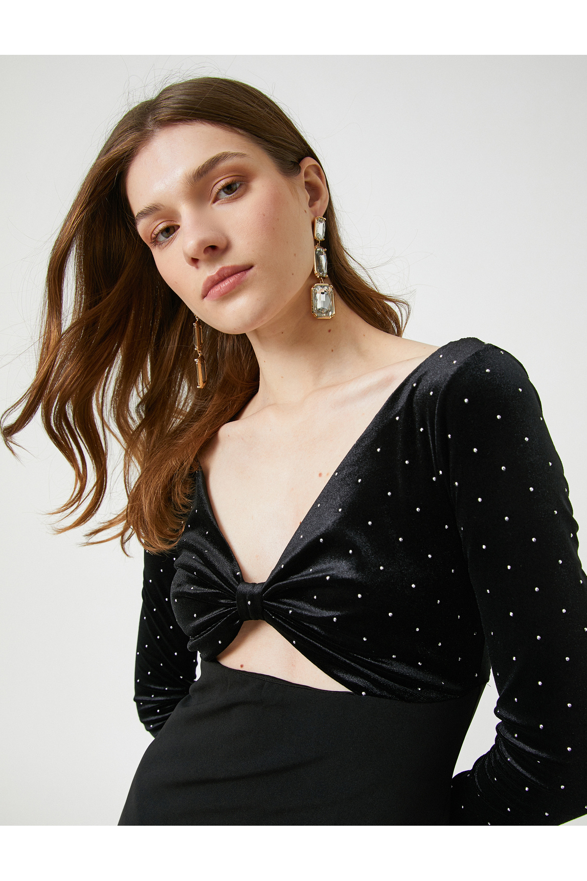 Payetli Pencere Detaylı Uzun Kollu V Yaka Mini Bodycon Abiye Elbise Payetli Pencere Detaylı Uzun Kollu V Yaka Mini Bodycon Abiye Elbise 6WAK80021FK L